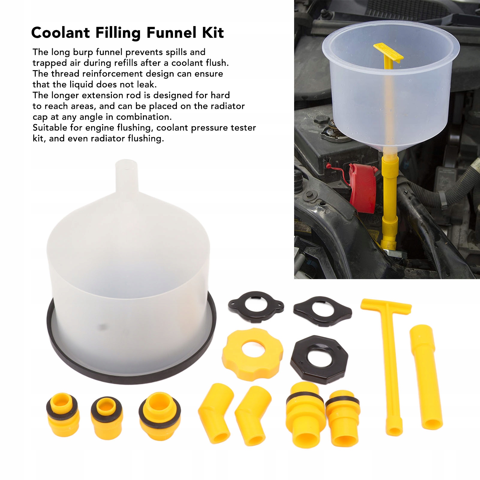 15 шт. Комплект воронок для заливки охлаждающей жидкости в радиатор. Устойчивая к пролитию, усиленная конструкция. Универсальный заправочный комплект системы охлаждения.