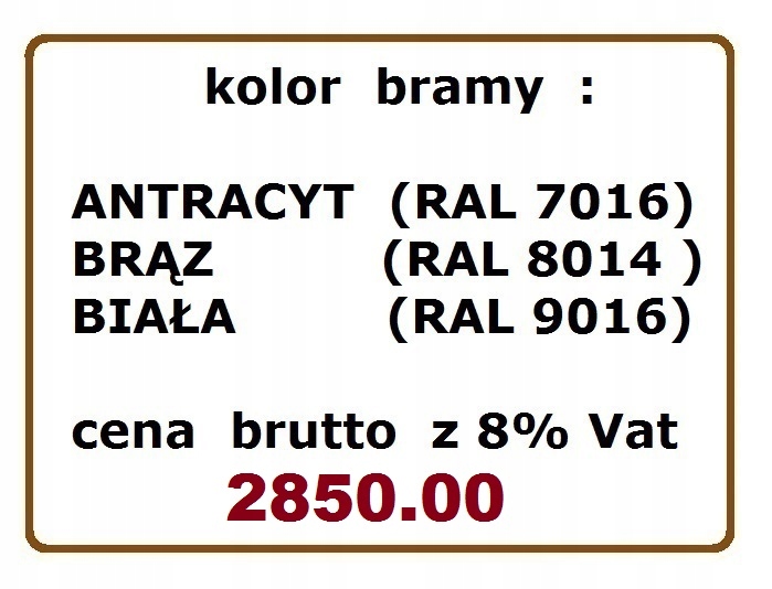 - Другие размеры, цвета и ворота, адаптированные к низкой перемычке, можно заказать в других моих предложениях Allegro.