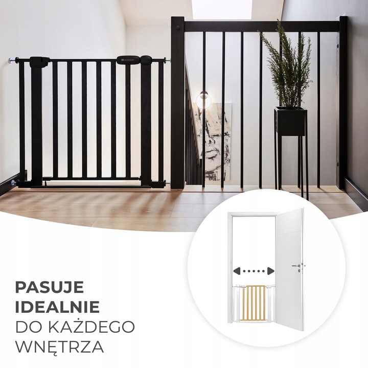 Вы можете установить ворота, не сверля стену. Его можно расширить, и вы можете настроить его на любую ширину от 75 до 103 см.
