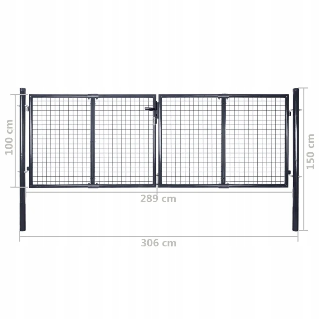 Ворота садовые сетчатые, оцинкованная сталь, 289х100 см, серые