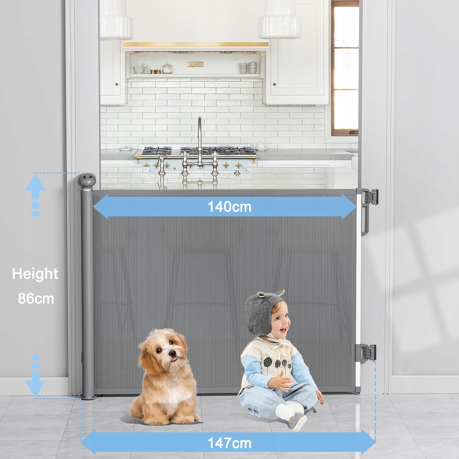 - ✅ 【Отличный, скрытый дизайн】: Это ворота можно расширить до шириной 140 см и высотой 86 см. Когда он не используется, чистая шкура скрывается, сохраняя место и облегчает хранение. В отличие от металлических барьеров, эти внутренние ворота для собаки не имеют более низкого барьера, который устраняет риск споткей.