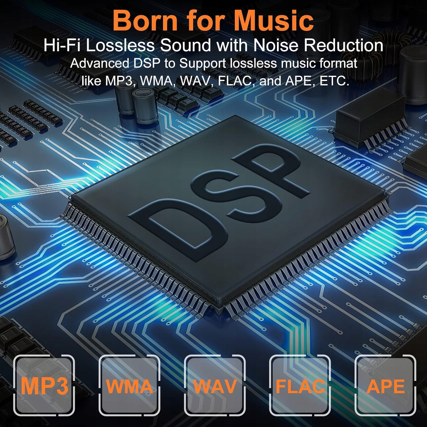 【Качество звука без потери HIFI】Высококачественный чип шумоподавления, низкий уровень искажений. Вы слышите множество деталей с насыщенными басами и четкими высокими частотами. Поддерживает MP3, WMA, DRM WMA, OGG, Monkey (нормальный/быстрый), Flac, WAV, AC-LC, Acelp, звуковой формат и т. д.