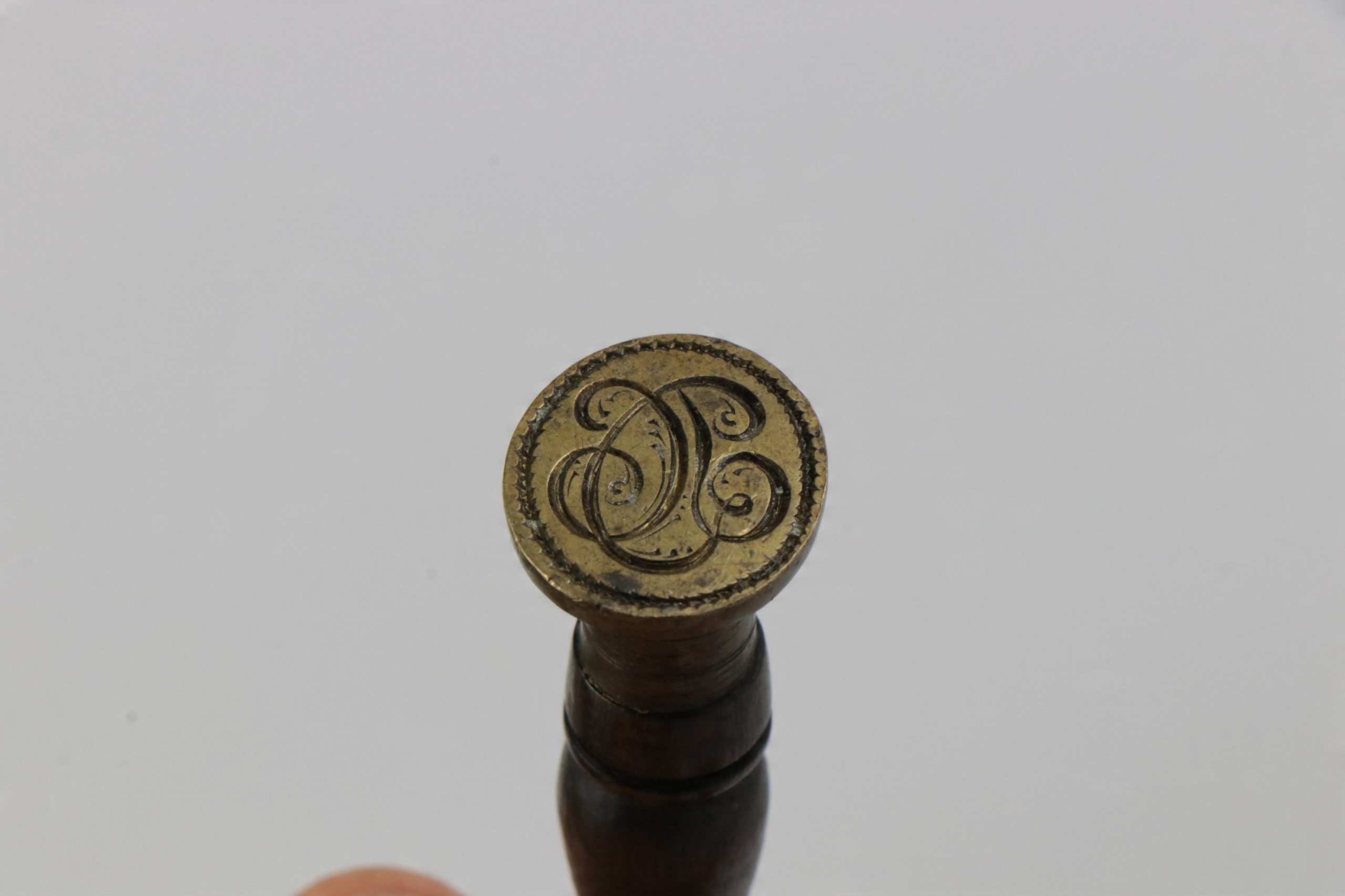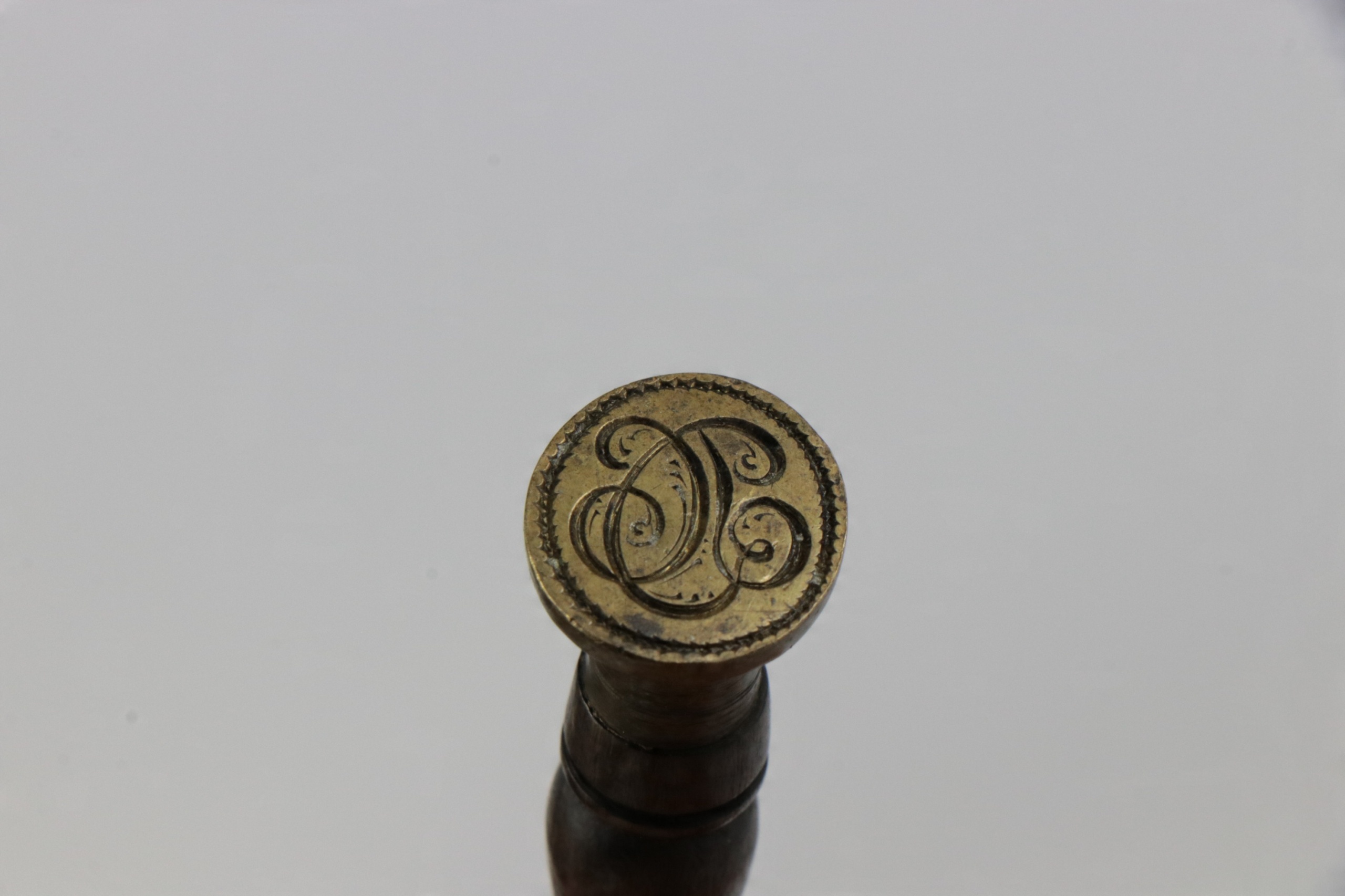 Сургучная печать XIX или начала XX века. На печати имеется монограмма DC. Ручка деревянная.