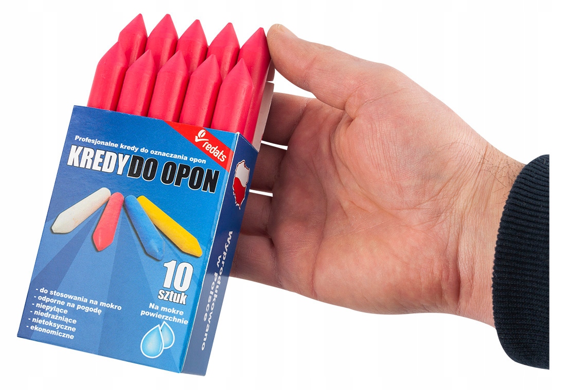 Мел для шин REDATS известен своей долговечностью и эффективностью при маркировке сухих, мокрых или грязных шин. Надпись на шинах очень стойкая – ее можно смыть только нитрорастворителем.