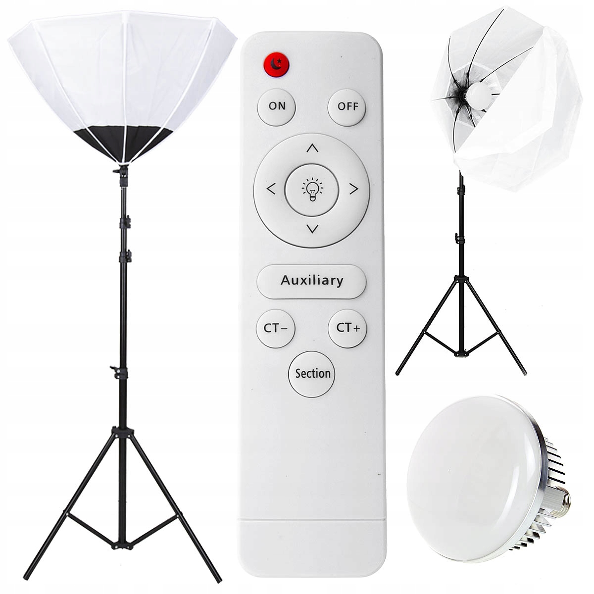 Лампа поставляется с удобным и аккуратным пультом дистанционного управления, с помощью которого можно управлять лампочкой. Пульт дистанционного управления связывается с лампочкой по инфракрасному каналу. Инфракрасный приемник установлен под защитной крышкой, и им можно управлять с передней части лампы. Чувствительность приемника достаточно высока, чтобы обеспечить работу лампочек в закрытых софтбоксах CineGEN.