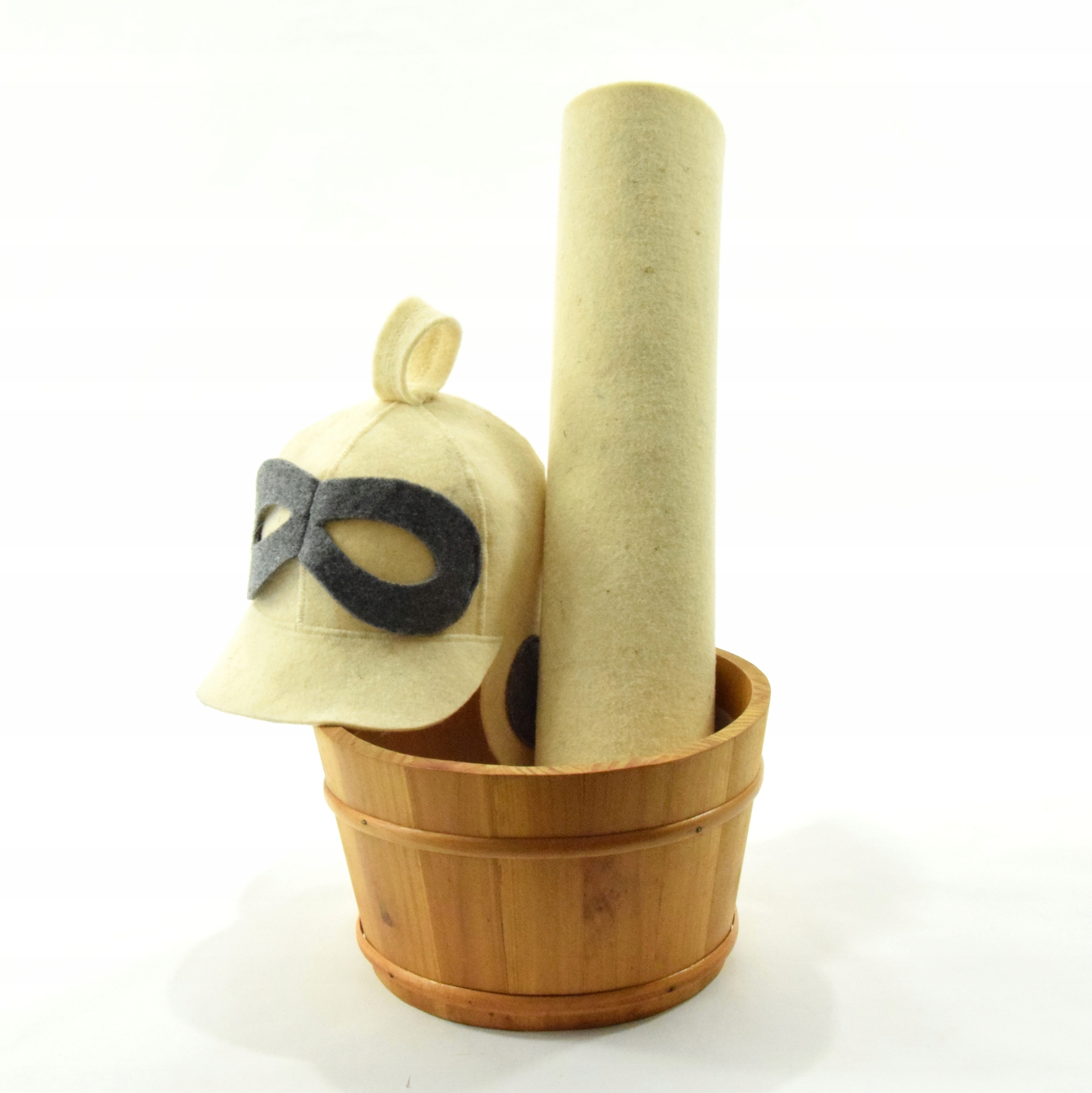 В древности во время пребывания в сауне использовали головные уборы из натурального сырья – войлок из натуральной овечьей шерсти – который очень хорошо сохраняет нормальную температуру головы в течение длительного времени в жарком помещении.
