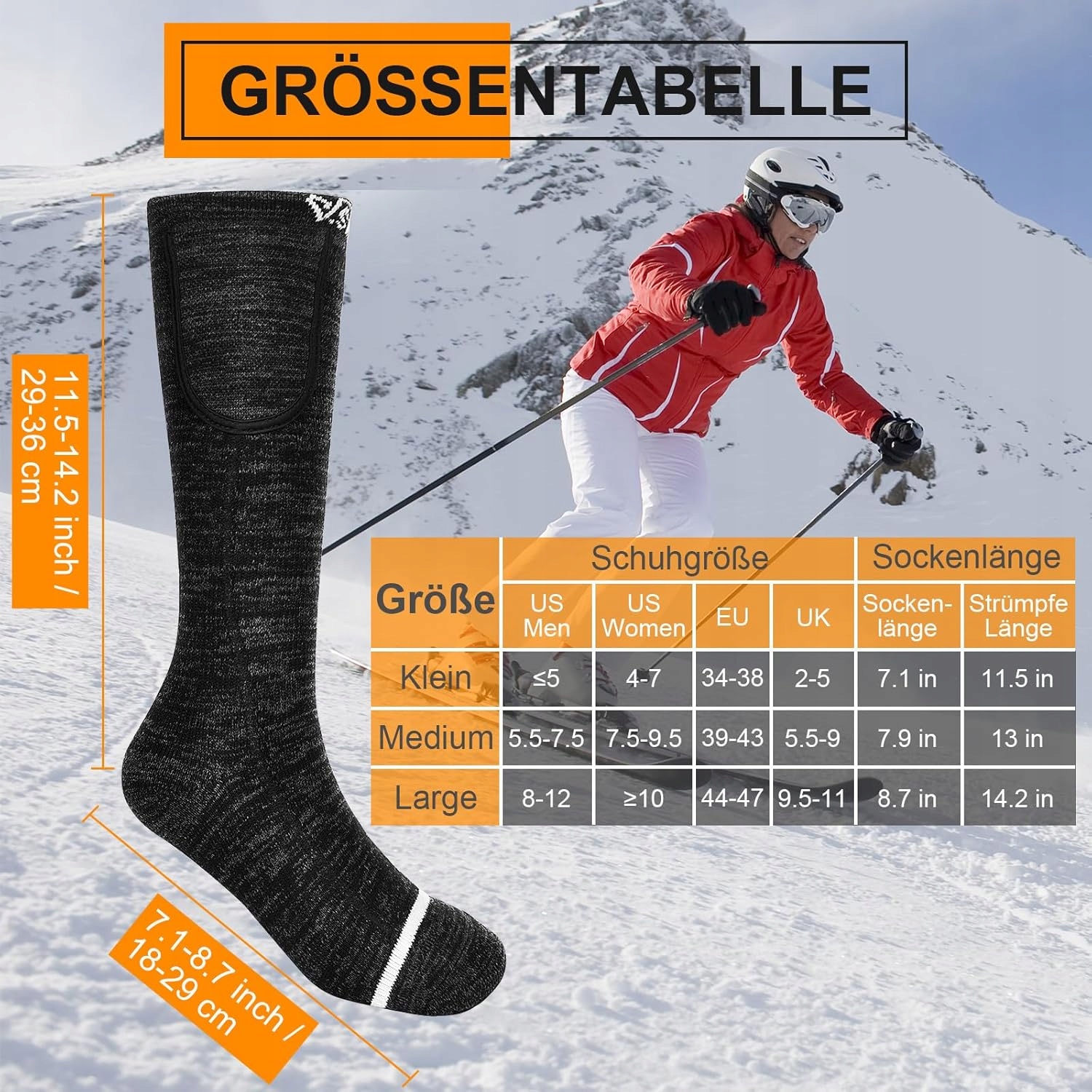Носки из шерсти с подогревом и применением 3 режима Батарея 4000 мАч р. С