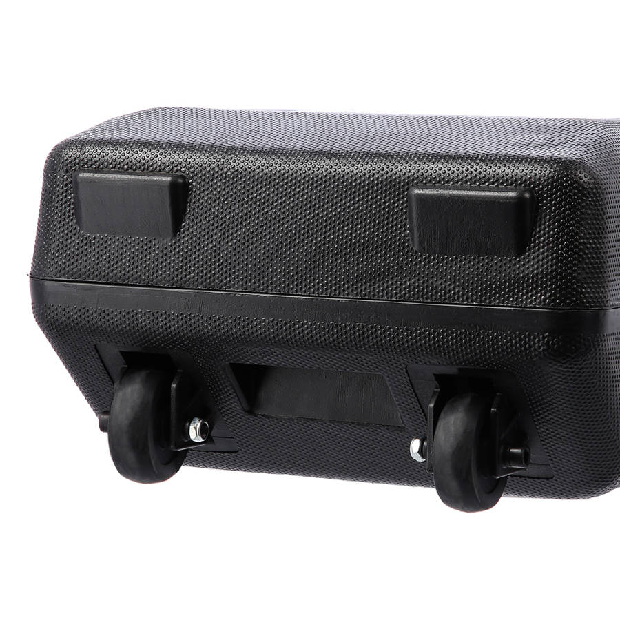 В комплект входят две короткие штанги, длинная скрученная штанга, шесть зажимов и всего 20 весовых блинов. . Все находится в удобном чемодане. Общий вес комплекта 50 кг, поэтому для удобства транспортировки чемодан имеет колесики, которые помогают перемещать оборудование.