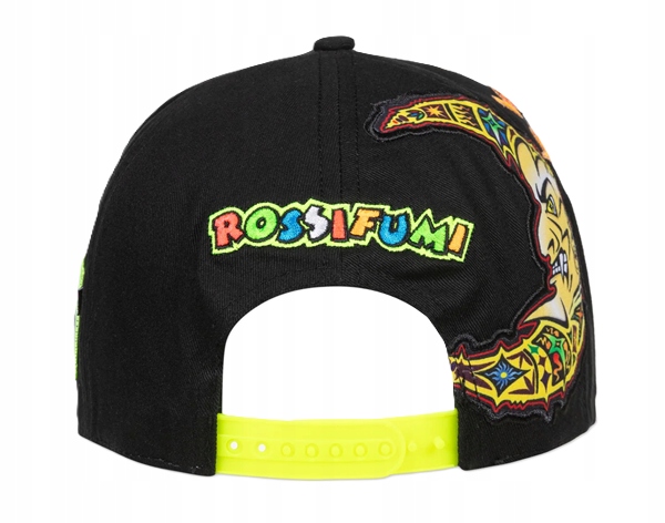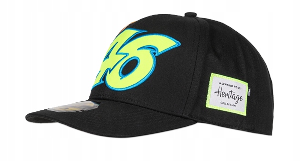 Кепка со средними полями из коллекции VR46 Heritage Valentino Rossi, линии, посвященной брендам и историческим моментам в карьере Валентино. Изготовленная из хлопка и бейсбольного материала, она украшена вышивкой с цифрой 46 и солнцем спереди, изображением луны по бокам и этикеткой, характеризующей дизайн VR46 Heritage. На спине вышит логотип Rossifumi.