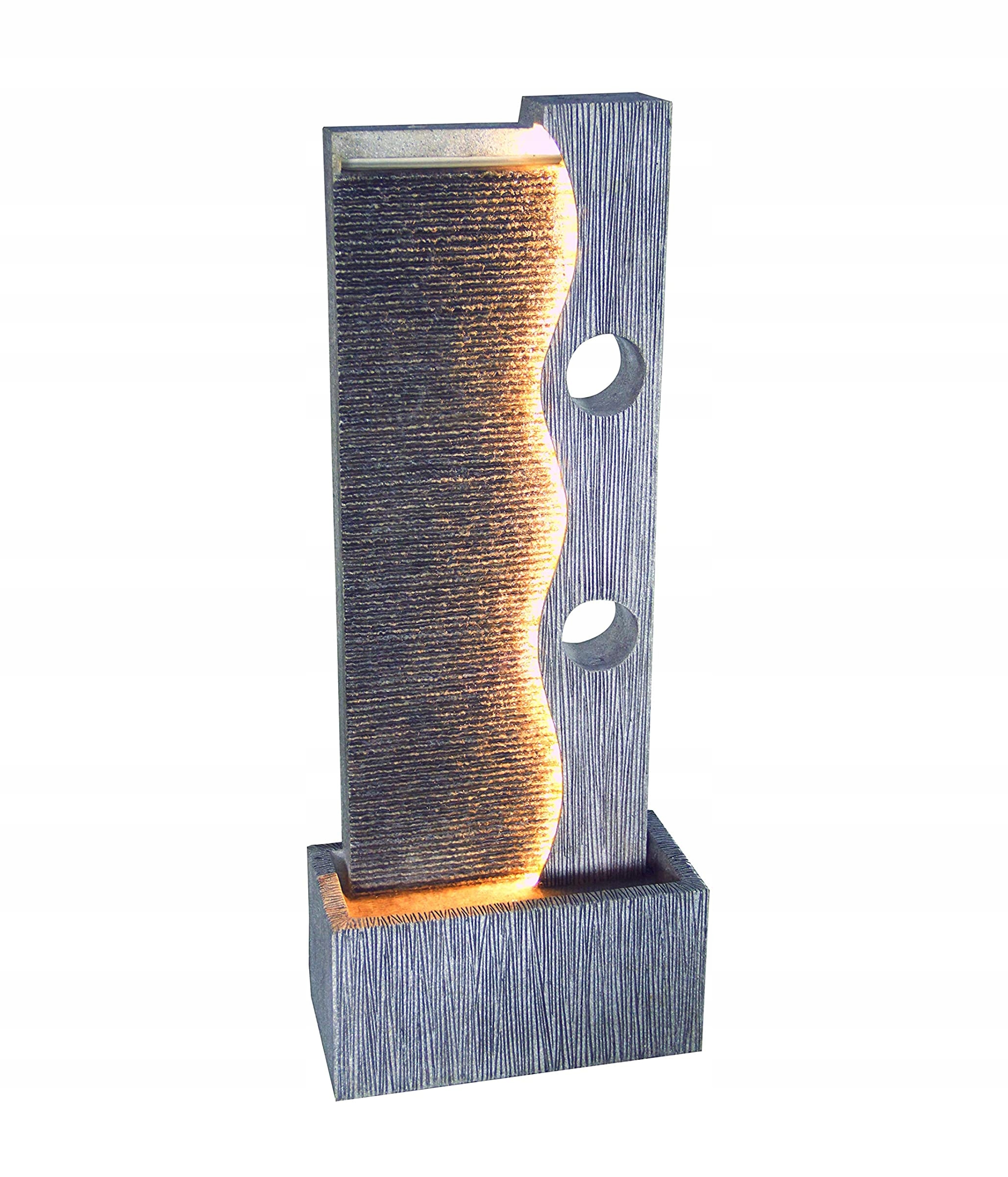 Садовый фонтан Eclipse со светодиодной подсветкой, размеры примерно 100 x 40 x 19,8 см, полиэфирная смола, серый