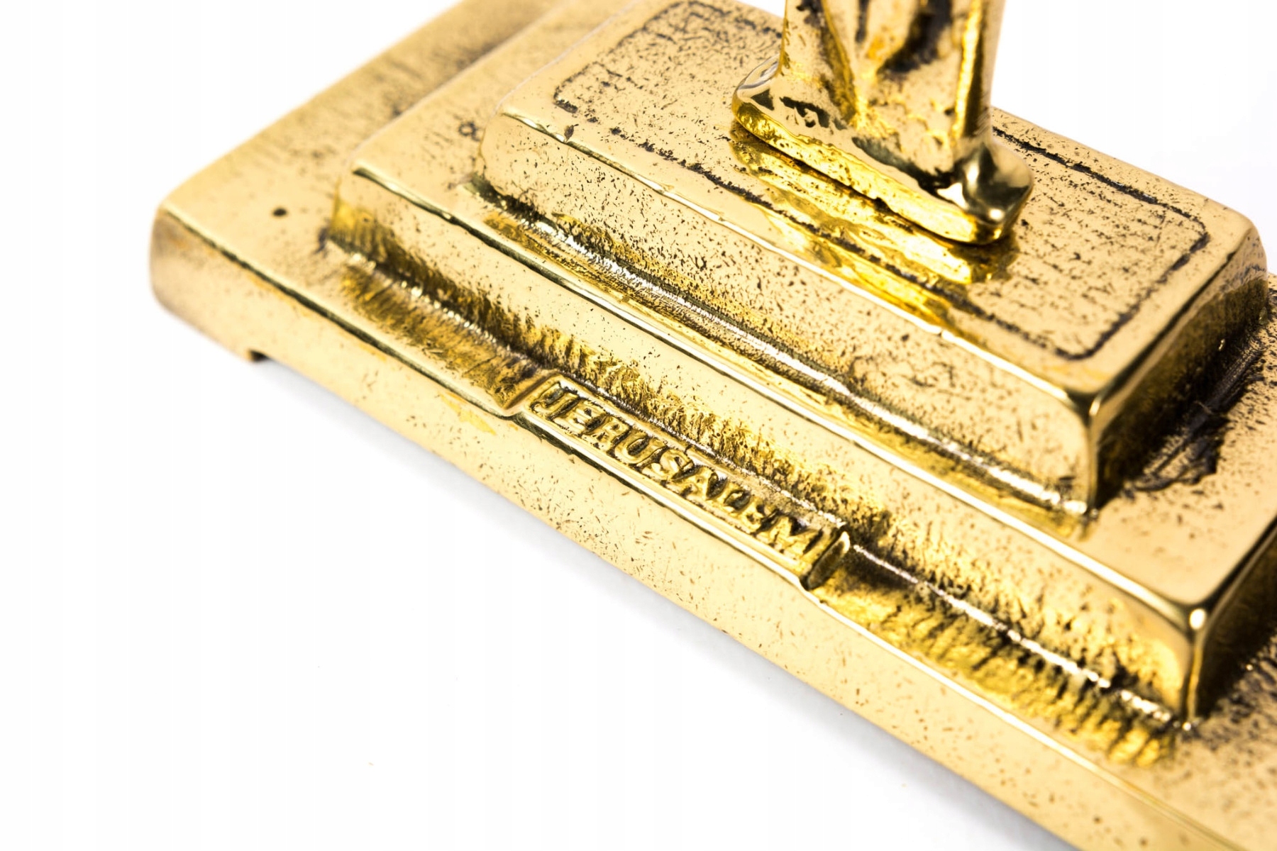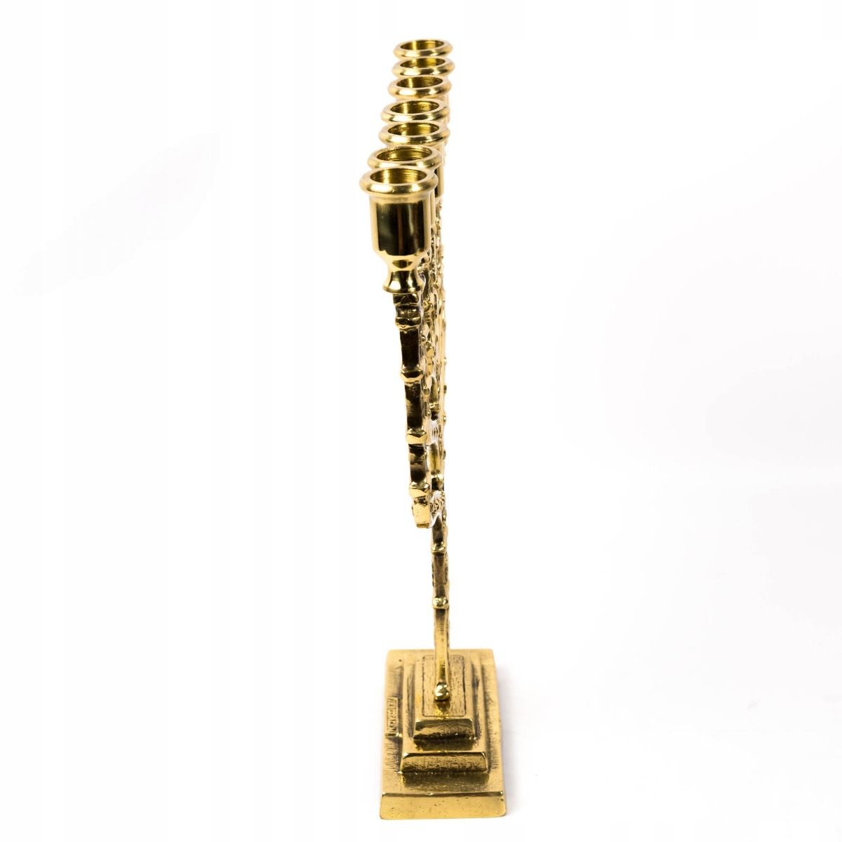 Еврейский подсвечник Менора Иерусалим, 7 плеч, медная. Целое слегка патифицировано, сражается, отполированные вины, с диаметром 1,8 см. Прямоугольное основание, оцениваемое, в самой широкой степени видимой надписи в кастинге: « jerusalem ». Подсвечник был покрыт лаком для предотвращения окисления латуни. польский продукт - мы поддерживаем польские поделки. kg