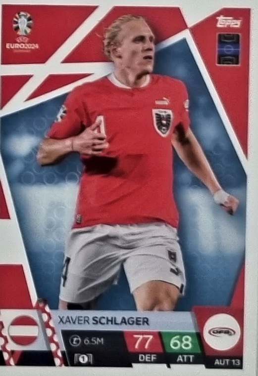 ЄВРО 2024 TOPPS МАТЧ ATTAX AUT 13 КСАВЕР ШЛАГЕР АВСТРІЯ