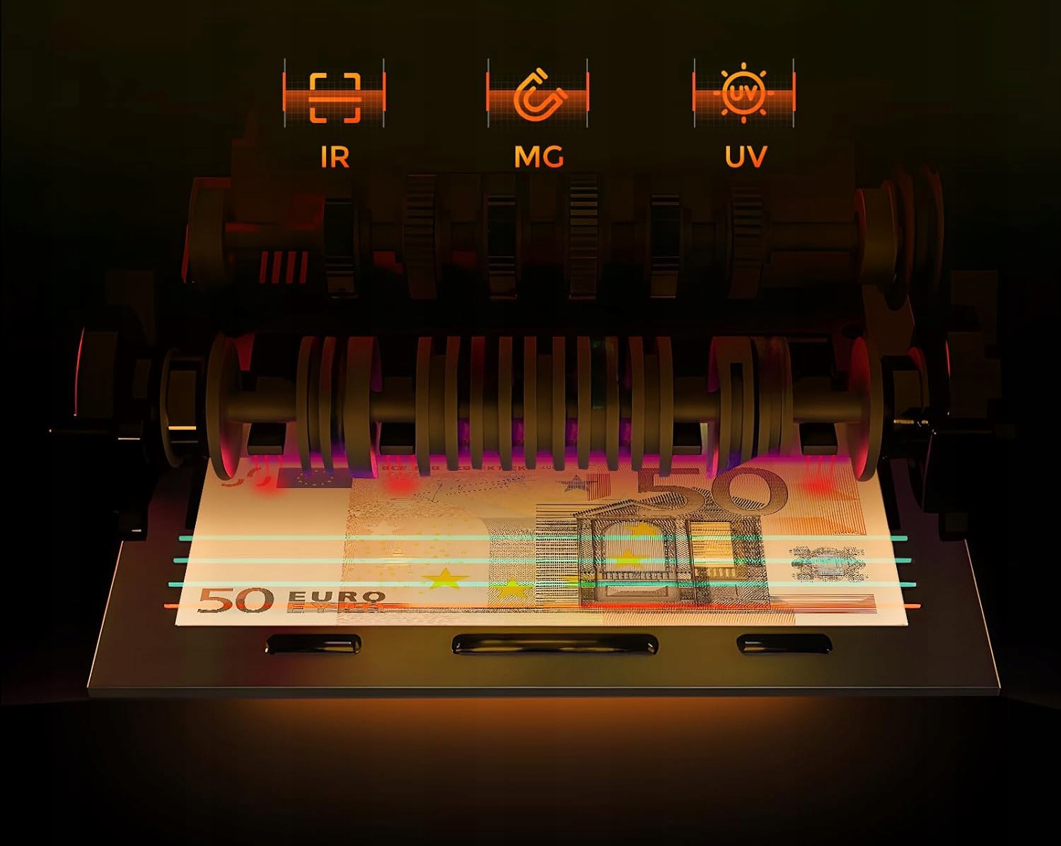 Устройство было оснащено системой обнаружения поддельных банкнот путем анализа три ключевых безопасности : uv, ir, mg. Благодаря этому, Bonvoisin Banknote Counter не только обнаруживает подделки, но и определяет поврежденные банкноты, автоматически останавливая процесс подсчета и отображая подробную информацию о обнаруженных нарушениях. Кроме того, встроенная система голосовая реклама информирует о ходе операций и предупреждениях о ложных банкнотах, что значительно повышает эффективность расчета.