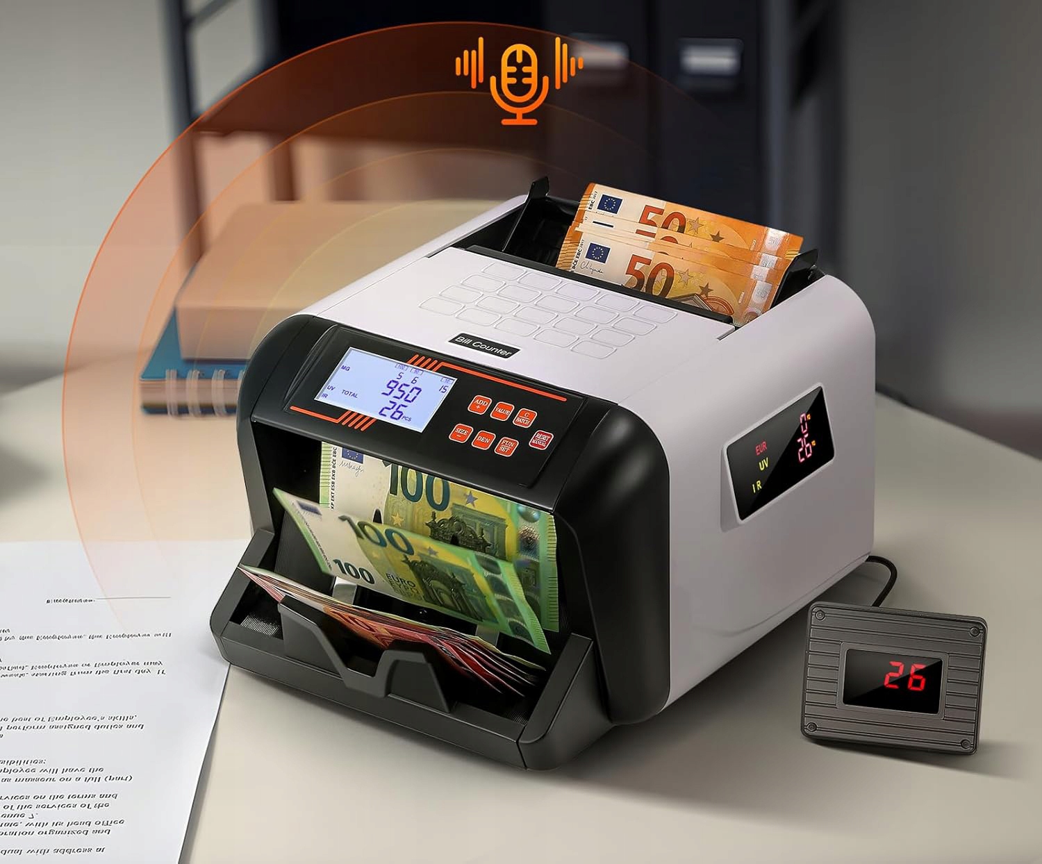 Bonvoisin Banknote Counter - это усовершенствованное устройство, которое позволяет быстро и точно подсчитать евро -банкноты с различными конфессиями. Благодаря возможности отображения количество банкнот , сумм и общая стоимость на основном экране пользователи получают полный обзор денежных транзакций. Это делает его идеальным инструментом для магазинов, сервисных торговых точек и везде, где вы используете большую сумму денег.