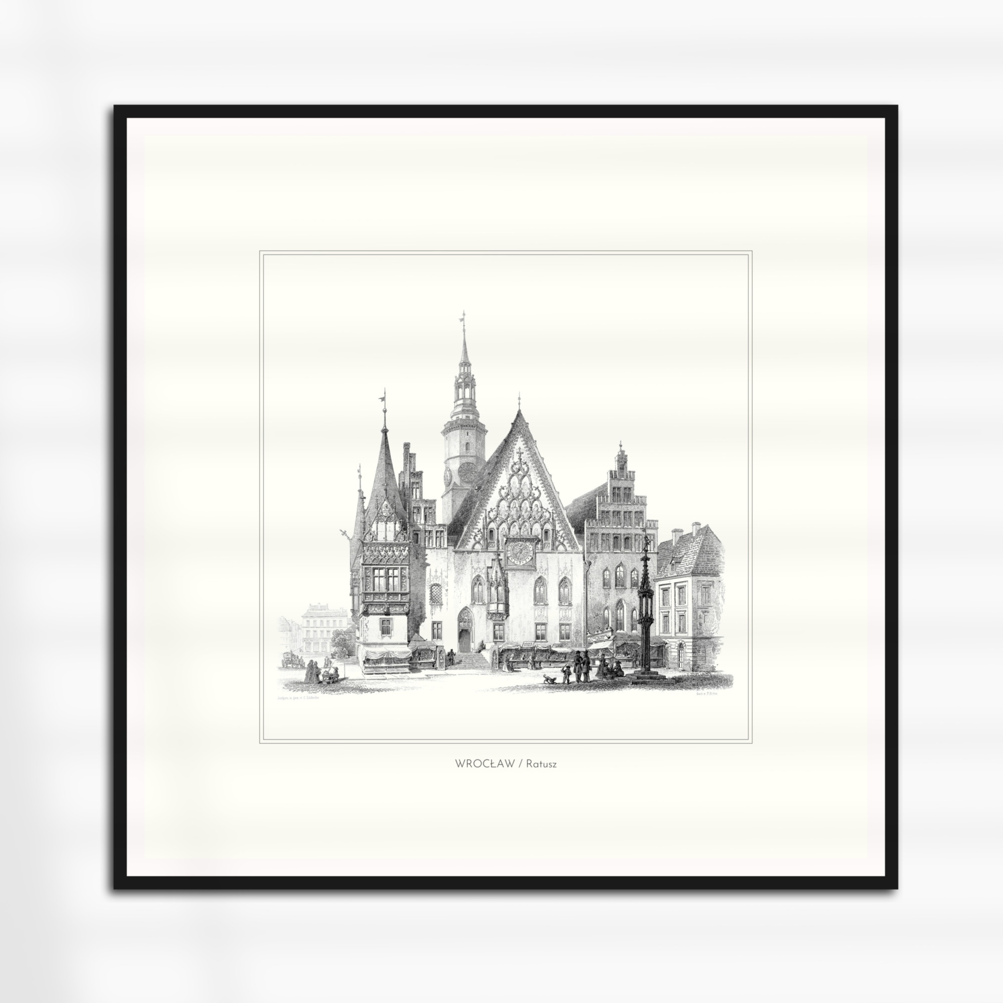 ВРОЦЛАВ Ратуша Ринкова площа РЕПРОДУКЦІЯ старого настінного малюнка 40x40