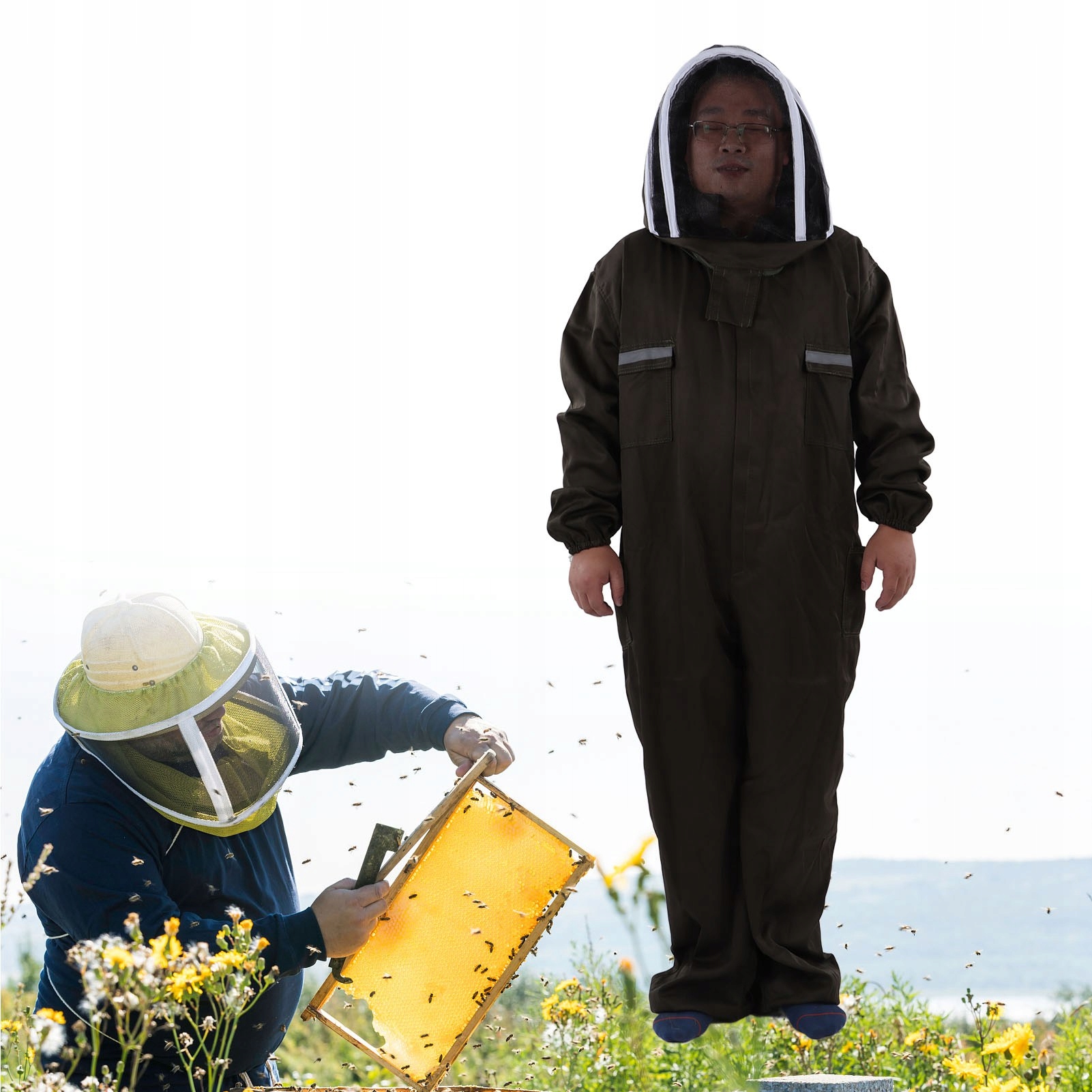 4. Высококачественный полиэфирный материал: этот комбинезон пчеловодства с одним из них изготовлен из полиэстера высочайшего качества, ткань чрезвычайно тонкая и дышащая, мягкая и удобная для износа.