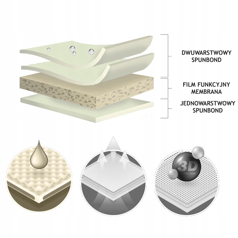 - Следующий слой - паропроницаемая мембрана. Мембрана не пропускает влагу снаружи, а отводит ее из-под брезента.