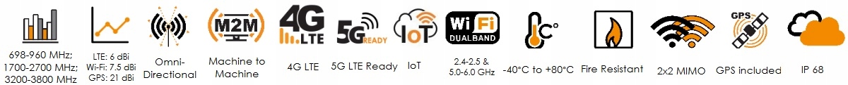 - Прочный, вандалозащищенный и водонепроницаемый корпус антенны (класс IP 68)