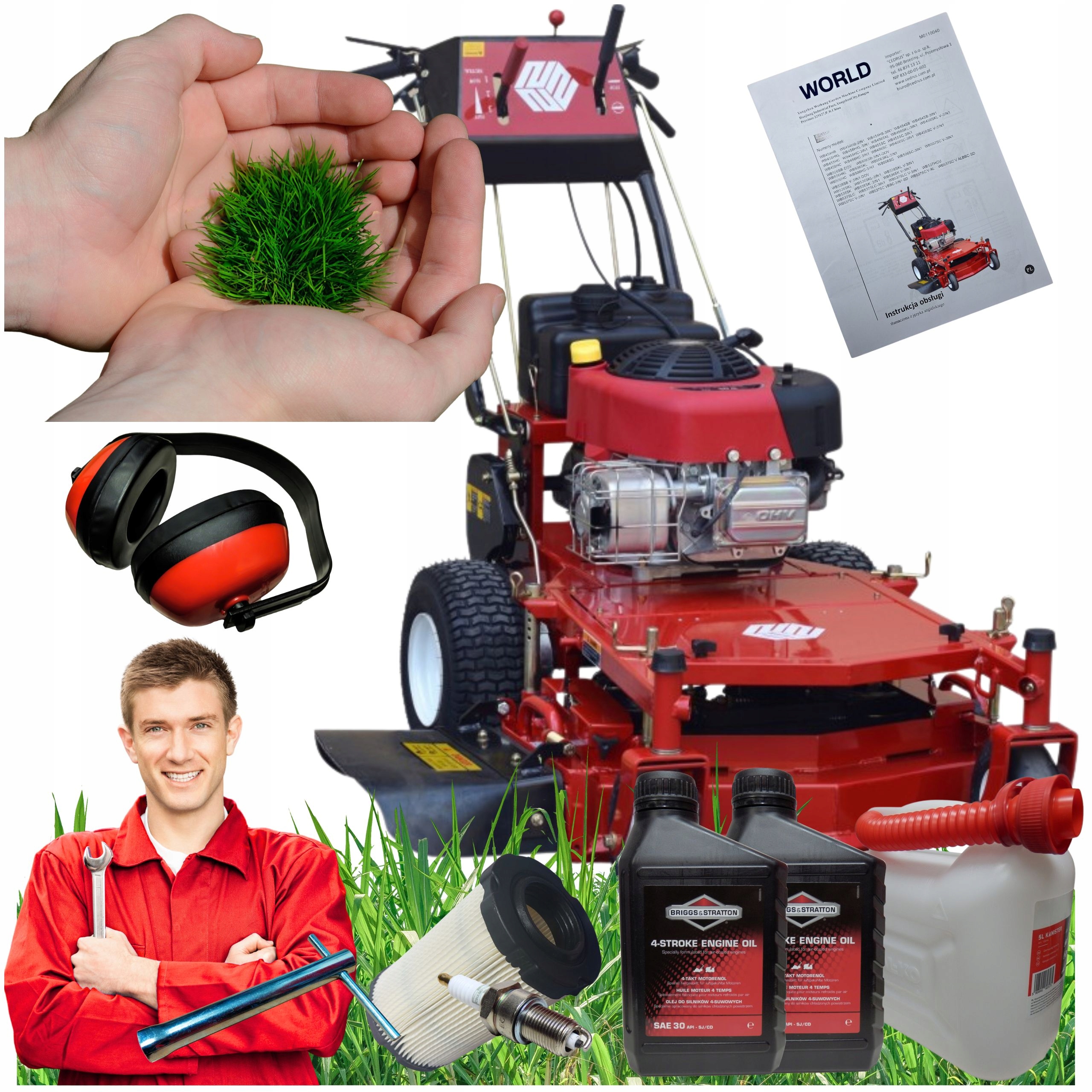 - , если вы заглядываете в свои дополнительные выплаты. Все, что вам нужно, чтобы использовать косилку! Вы перестанете думать о том, какое масло вам нужно купить и нужно ли вам что -то еще использовать. Вам не нужно ничего покупать! Вы начнете работу сразу после сборки, затопления и запуска устройства. Купите только топливо и действуйте!