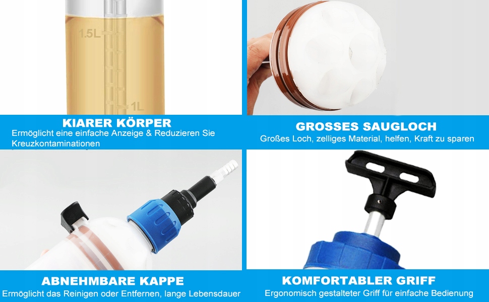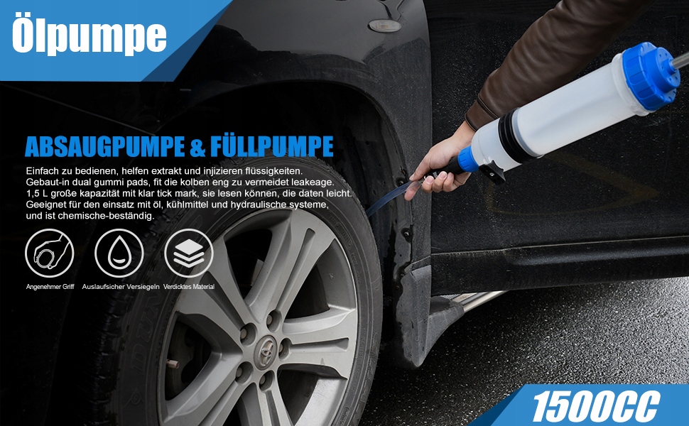 Наш всасывающий насос устойчив к коррозии и имеет большую емкость 1500 мл, а также эргономическая ручка для удобной сцепления. Он широко используется для удаления и смены масел в большинстве устройств, таких как автомобили, лодки и многие другие.