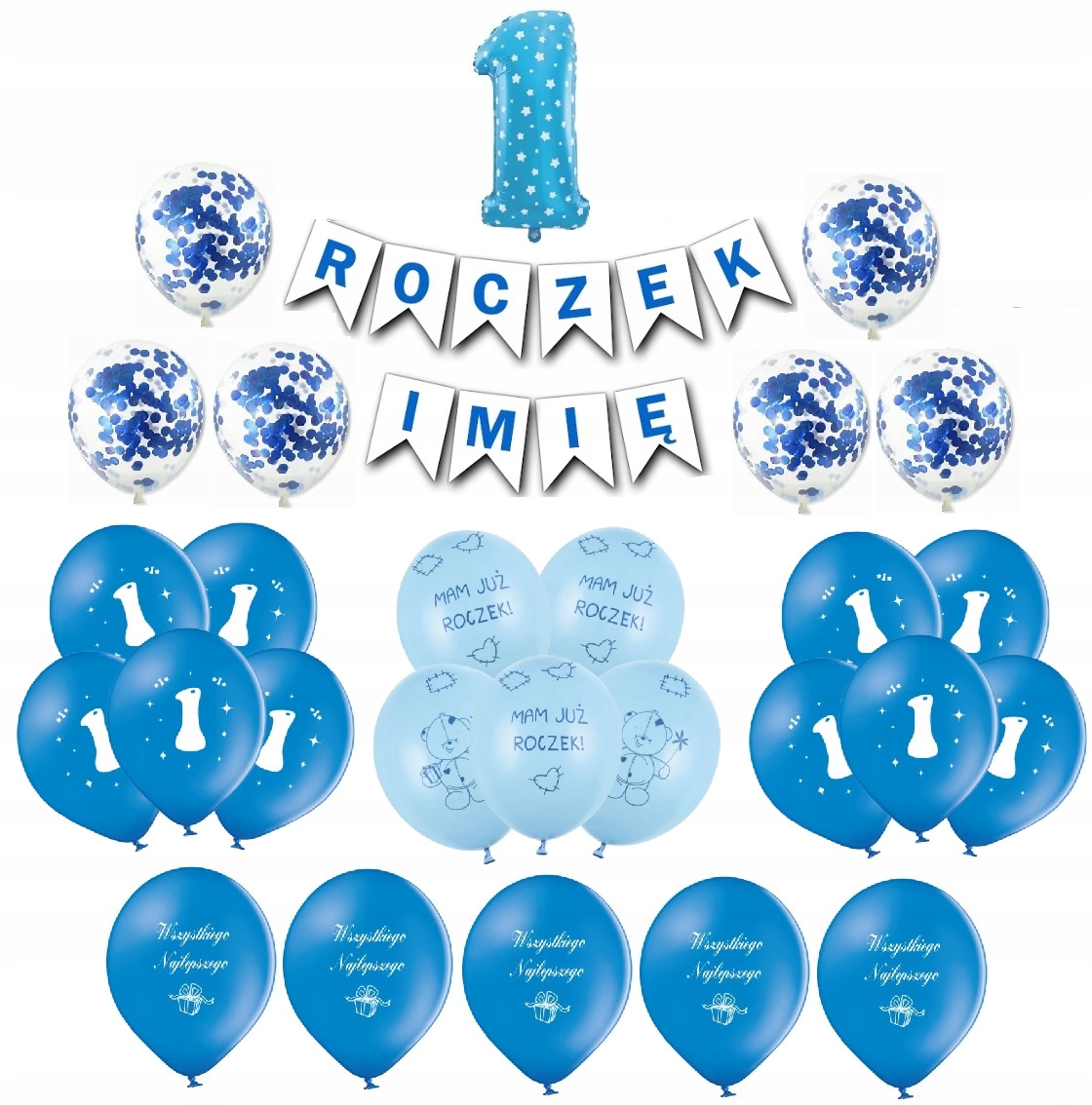 ⭐ Синие воздушные шары с "1" Печать - размер около 30 см - 10 штук