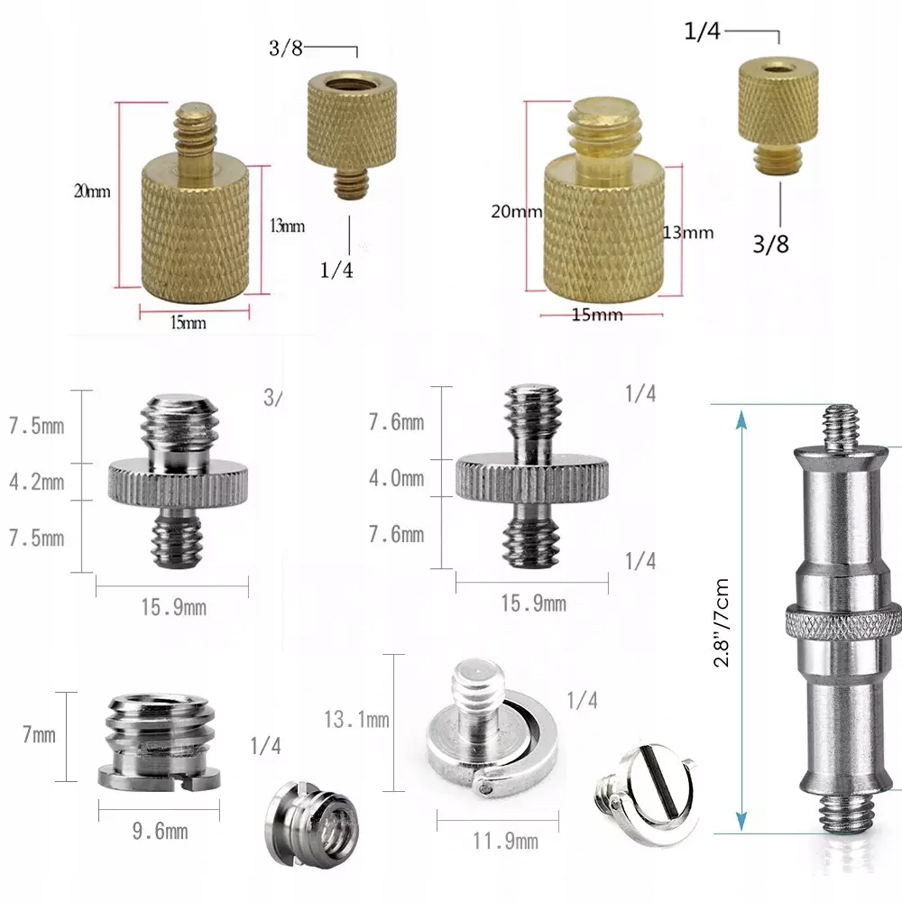 Материал высочайшего качества : винт из прочного материала, устойчивый к деформации. Соединения двух женщин или мужчин с диаметрами 1/4 "и 3/8". Поток 1/4 и 3/8 "чаще всего используется во многих камерах, камерах, фотографических аксессуарах