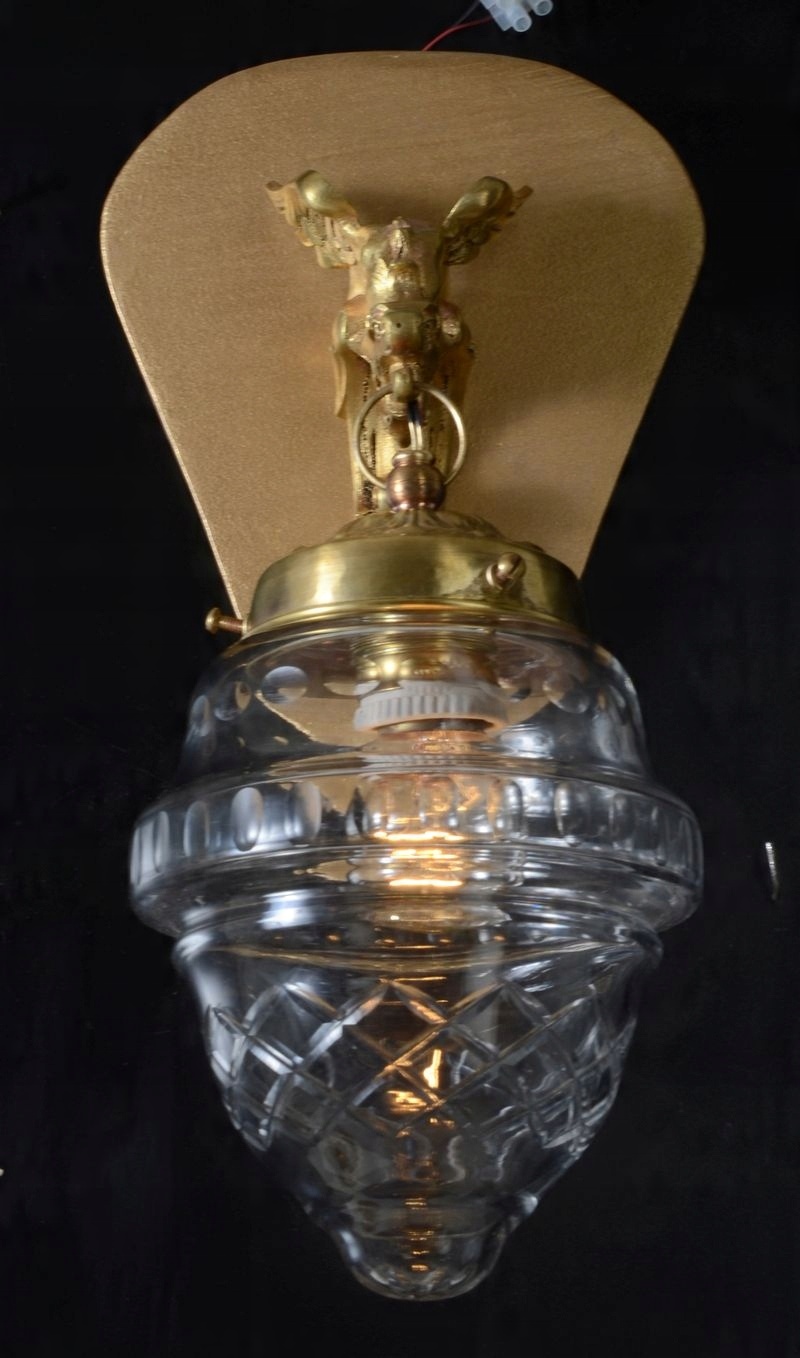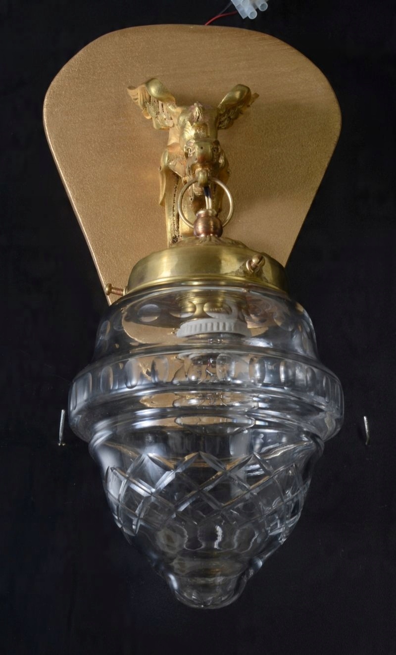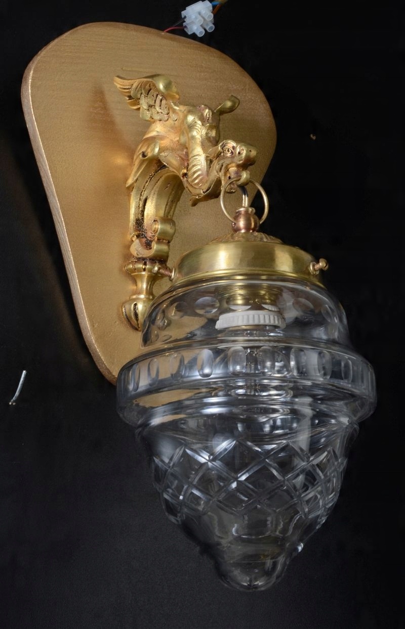 Предметом аукциона является оригинальный, чудесно изготовленный набор двух настенных ламп из Испании 1950 -х годов. Споры были сделаны из золотой латуни. Основное сочетание -это удивительная точность и удивительно украшение плеча и частей стены. Рука рука отражает дракона с крыльями, из которых огромный рот выходит из подвесного абажура, который изготовлен из твердого хрустального стекла с видимыми украшениями. Часть стены имеет оригинальную форму, и она была сделана из дерева, дополнительно окрашенной в золото. Предмет идеально подходит в любой комнате, с его уникальным внешним видом не будет очаровать ни одного человека.
