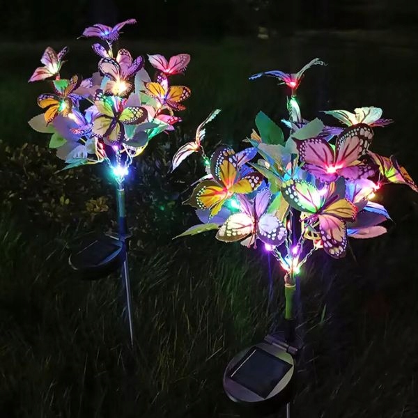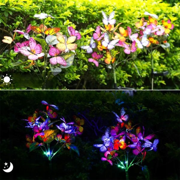Установите 2 X садовую светодиодную солнечную лампу декоративное цветок с бабочками