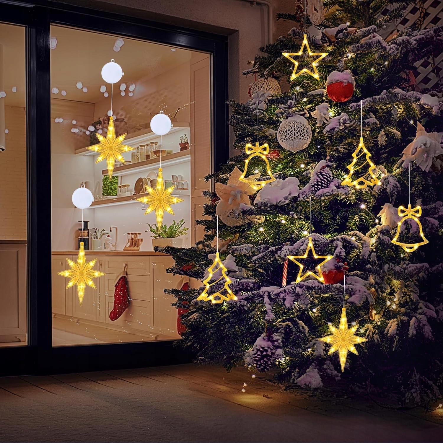 Рождественские огни Qedertek Led Stars, рождественские огни, питаемые батареи с всасывающими чашками, таймер, теплые белые оконные лампы для отделки внутренних