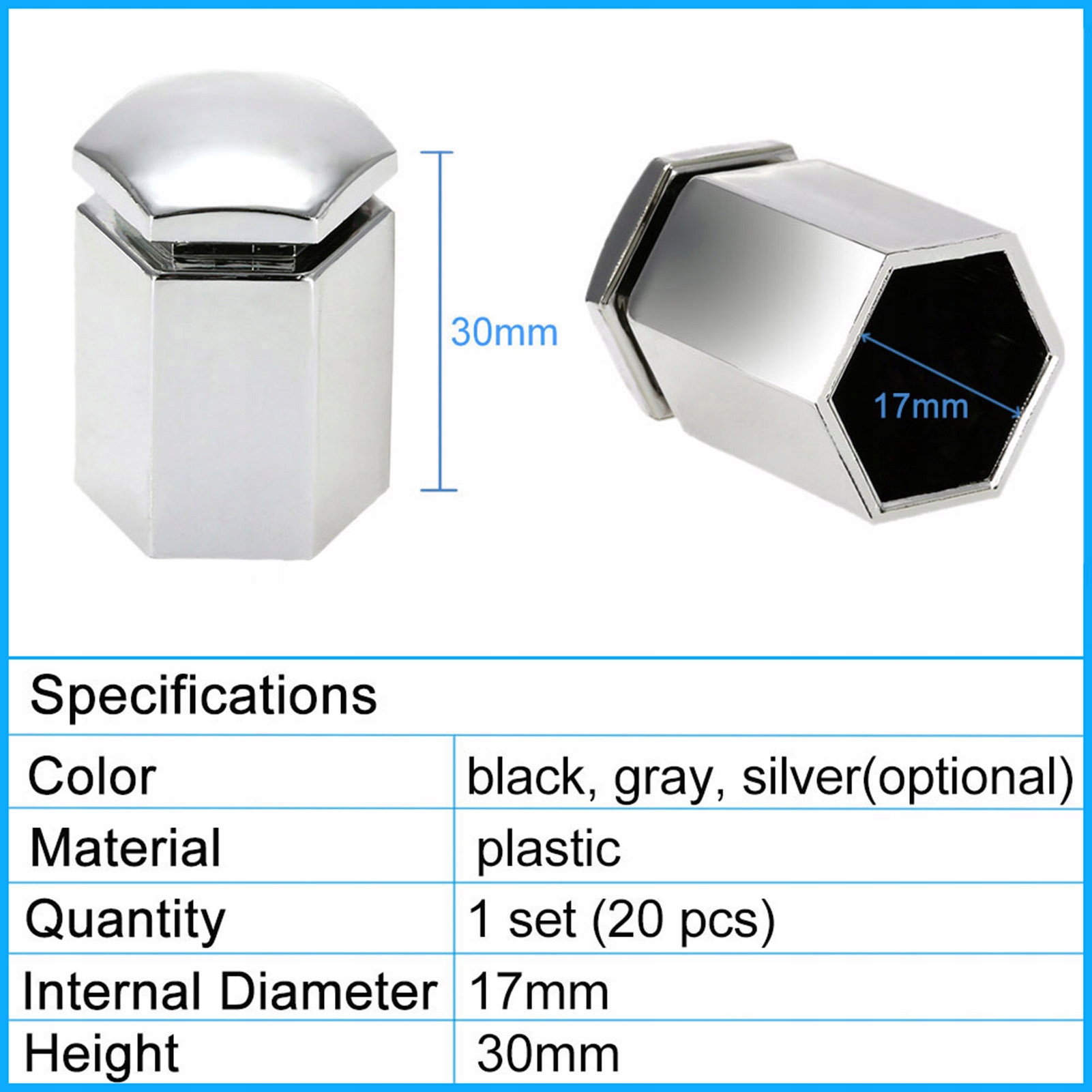 Набор из 20 пластиковых колпачков для круглых колесных гаек диаметром 17 мм для операционной