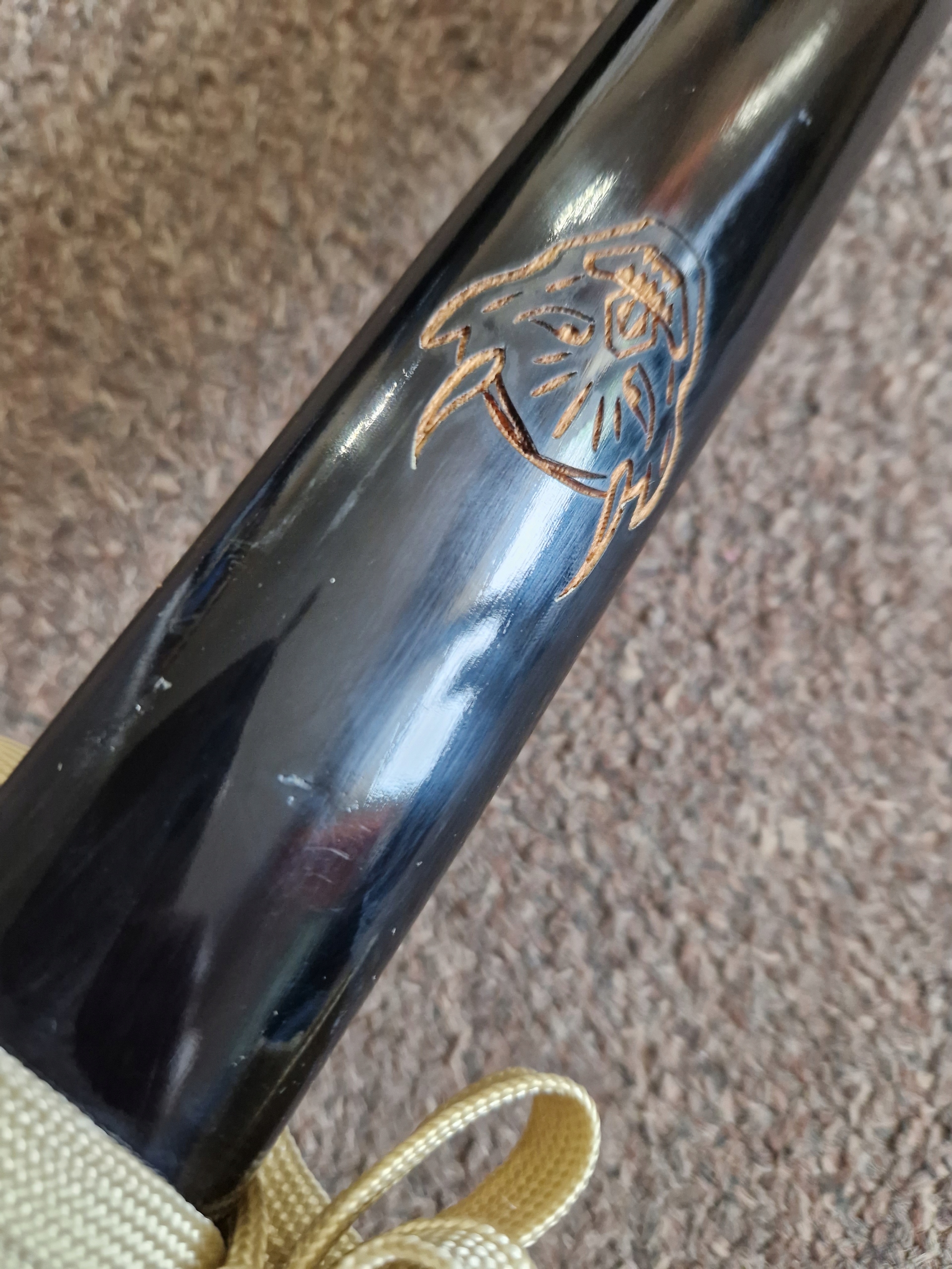 ✅ Материал: h2> - blade b>: углеродистая сталь, полированная (требует технического обслуживания), украшенная броня на лезвии, химически полученная, гравировка на ручке. Черный хлопок, имитация кожи лучей, металлическая цуба.
