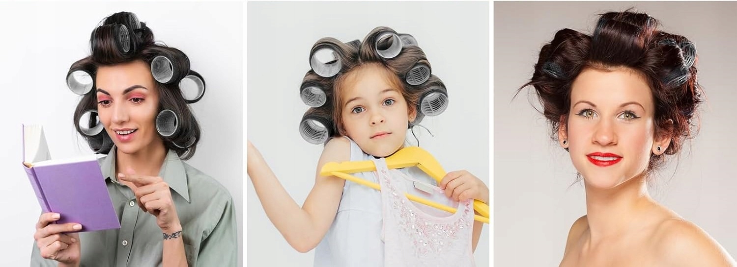 ▶ ️ Легко наносить и удалять: При использовании больших роликов, держите волосы слегка влажными, оберните конец волос вокруг двухслойного ролика на липучке и прикрепите их к коже головы. Оставьте волосы натурально сушить или использовать фен. При удалении роликов волосы не запутываются и могут быть легко удалены.