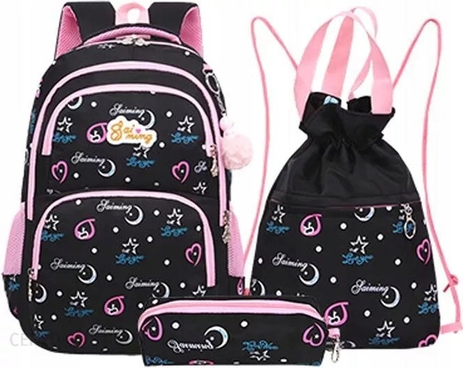 SET 4IN1 - рюкзак, карандаш и мешок в молодежном черном и розовом стиле