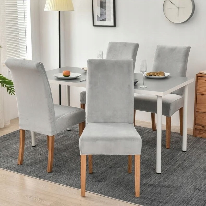 набор из 4 шт. Крышка стула покрывает велюр премиум -бархатный бархат гибкий светло -серый h1>