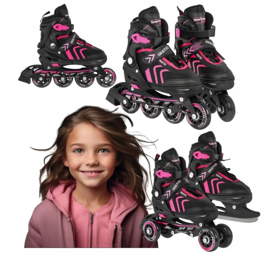 Установите 4IN1 Скейт Роллер Скейт для детей размером 29-33 розовый