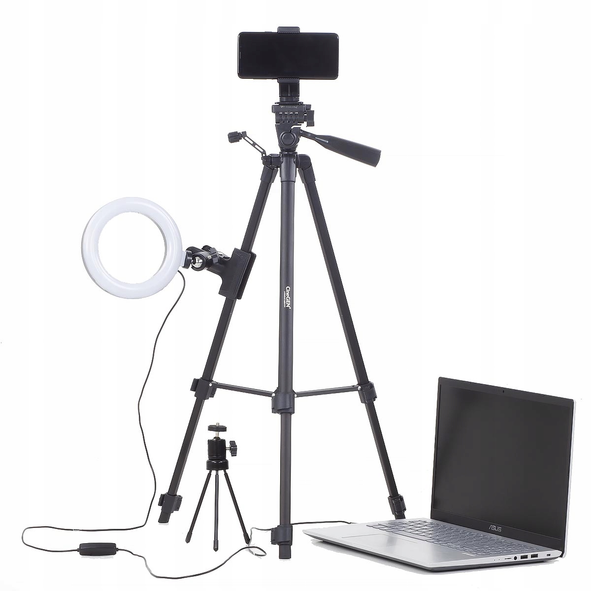 Функциональная кольцевая лампа 15,5 см, простой в использовании, регулируется как мощность освещения, так и его тепло: регулировка мощности 10 градусов и 3 градуса цвета. Его сила - 20 Вт идеально подходит для освещения портрета, деталей макияжа, продуктов, отлично подходит для записи фильмов или живых видео разговоров. Он имеет возможность прикреплять аксессуары с Thread1/4 ”в этой ручке żabka и мини-штатив в нашем наборе CG-100