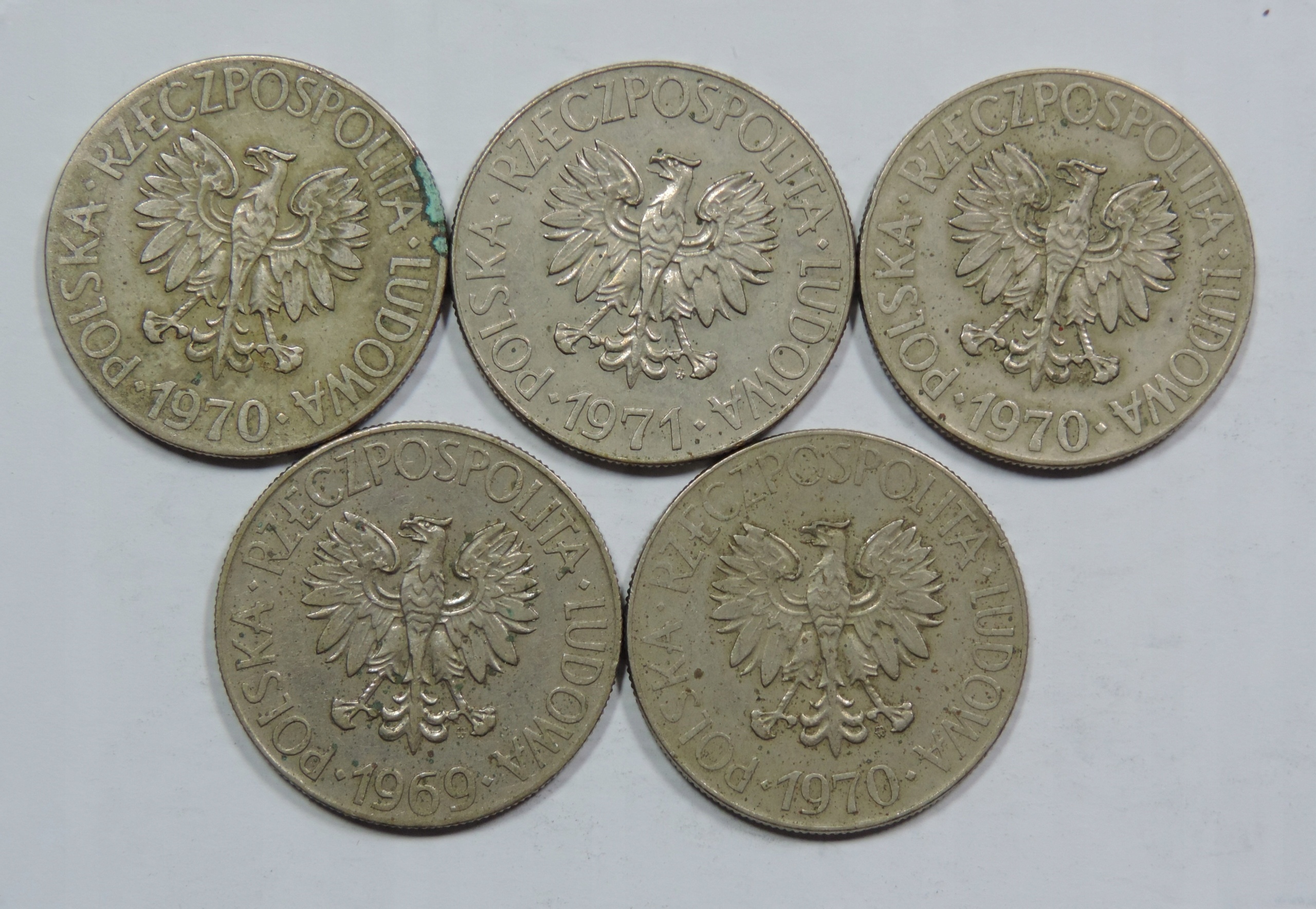 Установите 5x циркуляционная монета - польская PRL - 10 Zlotys Kościuszko -oy261