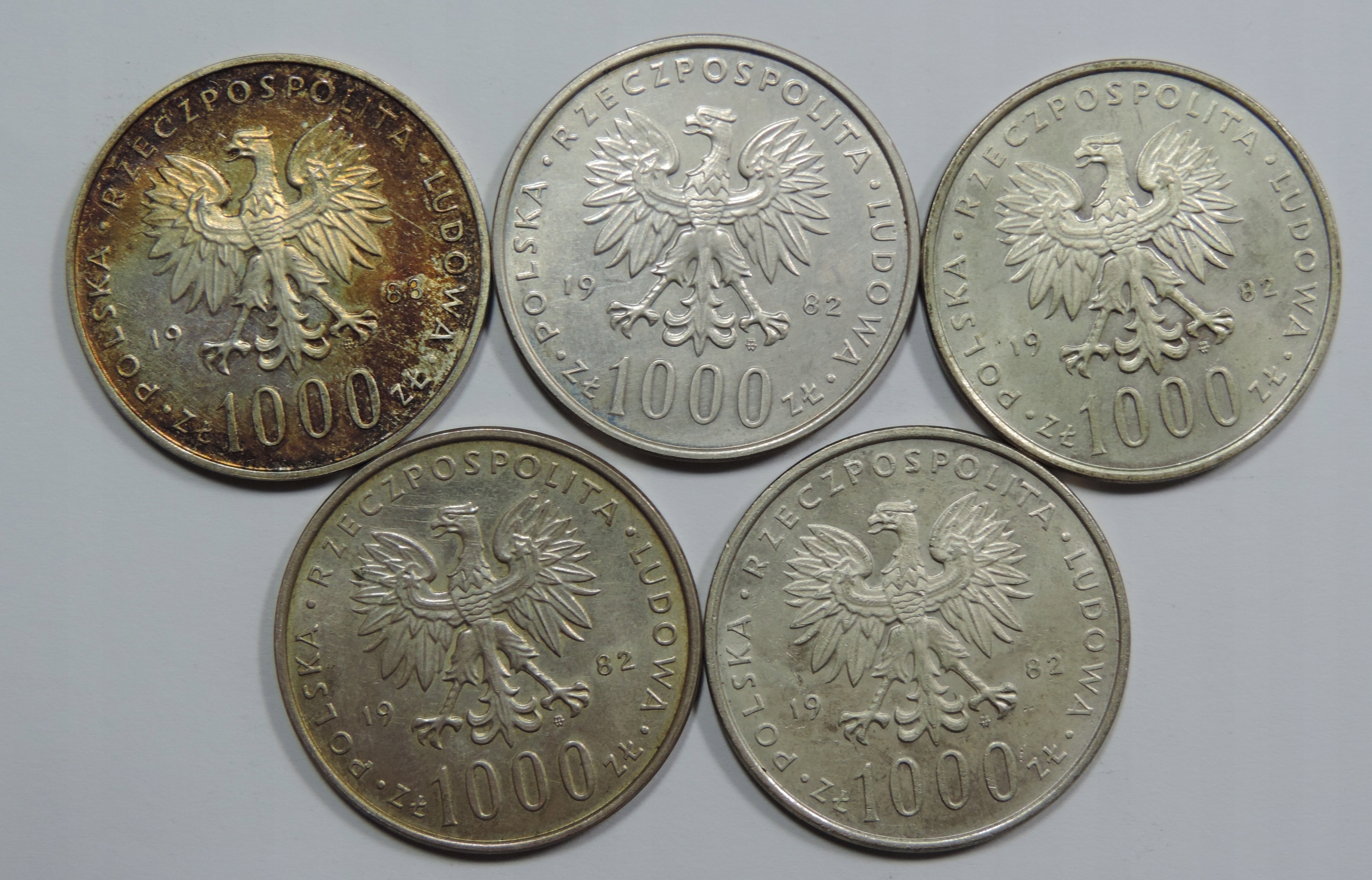 Установите 5x Silver Coin - Ag Coin - 1000 Zlotys из польской народной республики - Польша -OY5501