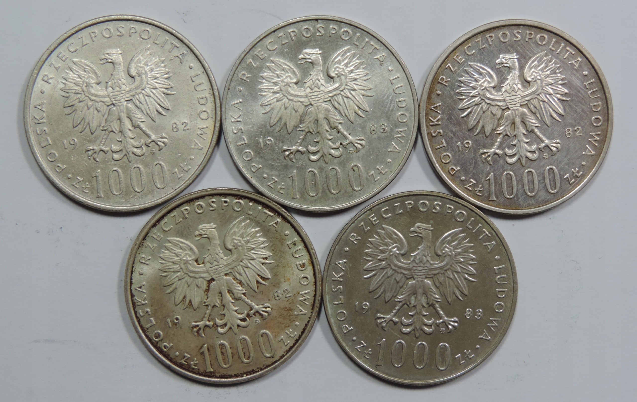 Установите 5x Silver Coin - Ag Coin - 1000 Zlotys из польской народной республики - Польша -OY5499