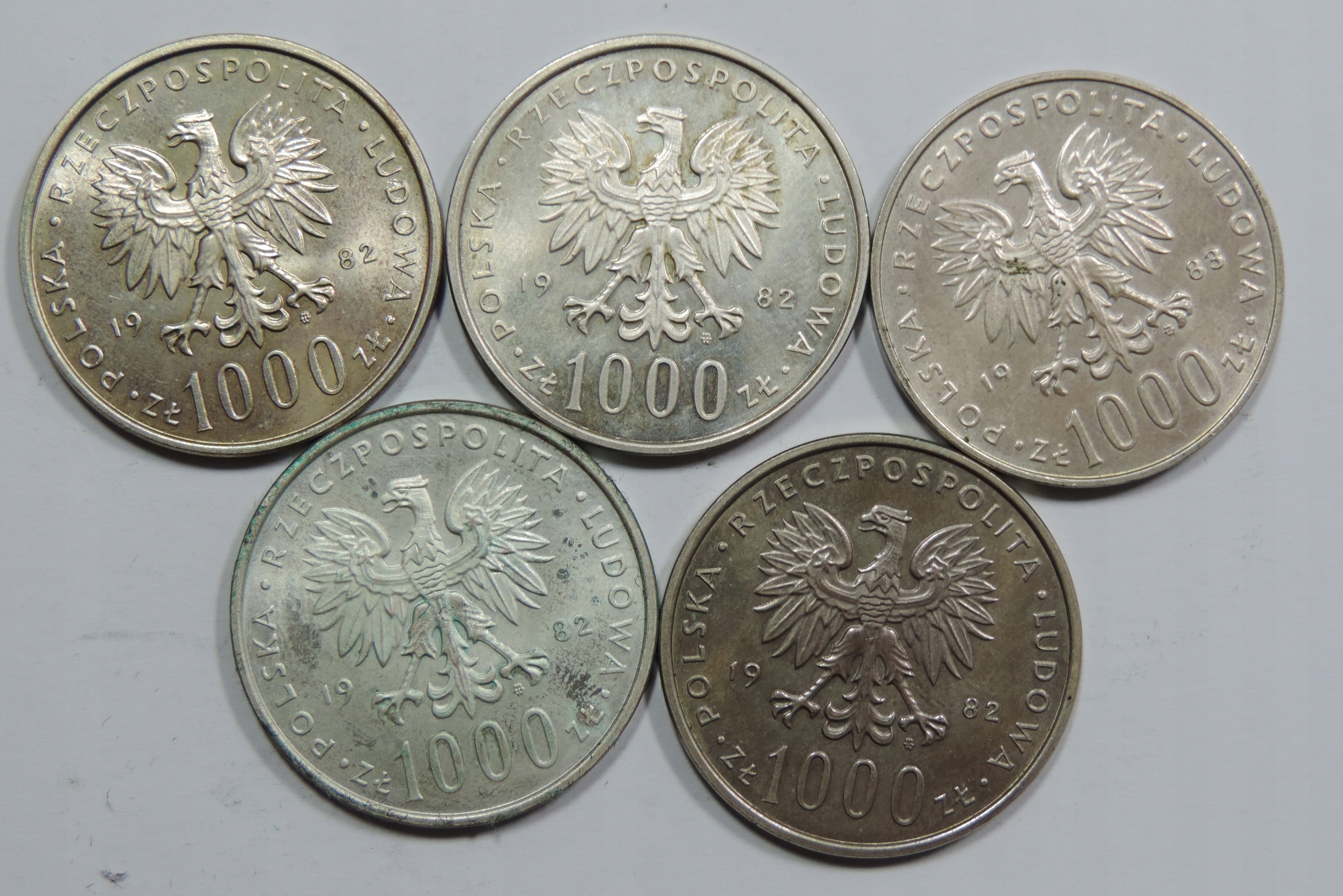 Установите 5x Silver Coin - Ag Coin - 1000 Zlotys из польской народной республики - Польша -OY5500