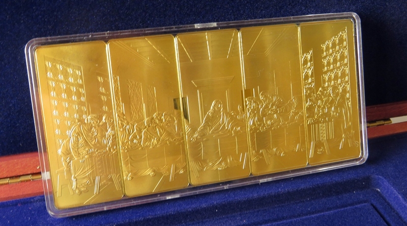 Эксклюзивный набор из 5 золотых баров коллекционера, создавая репродукцию знаменитого рабочего рабочего Все представлено в элегантном деревянном случае с сертификатом подлинности.