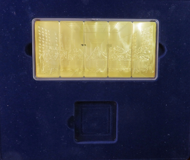 obverse: Полная сцена - «Последняя вечеря», согласно Леонардо да Винчи, с большой точностью выгравирована на поверхности пяти соседних стержней.