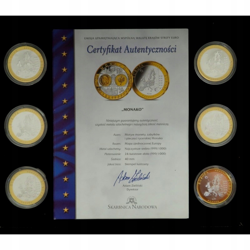 Установите 6 x Общую европейскую валюту, серебряный AG 999 + коробка