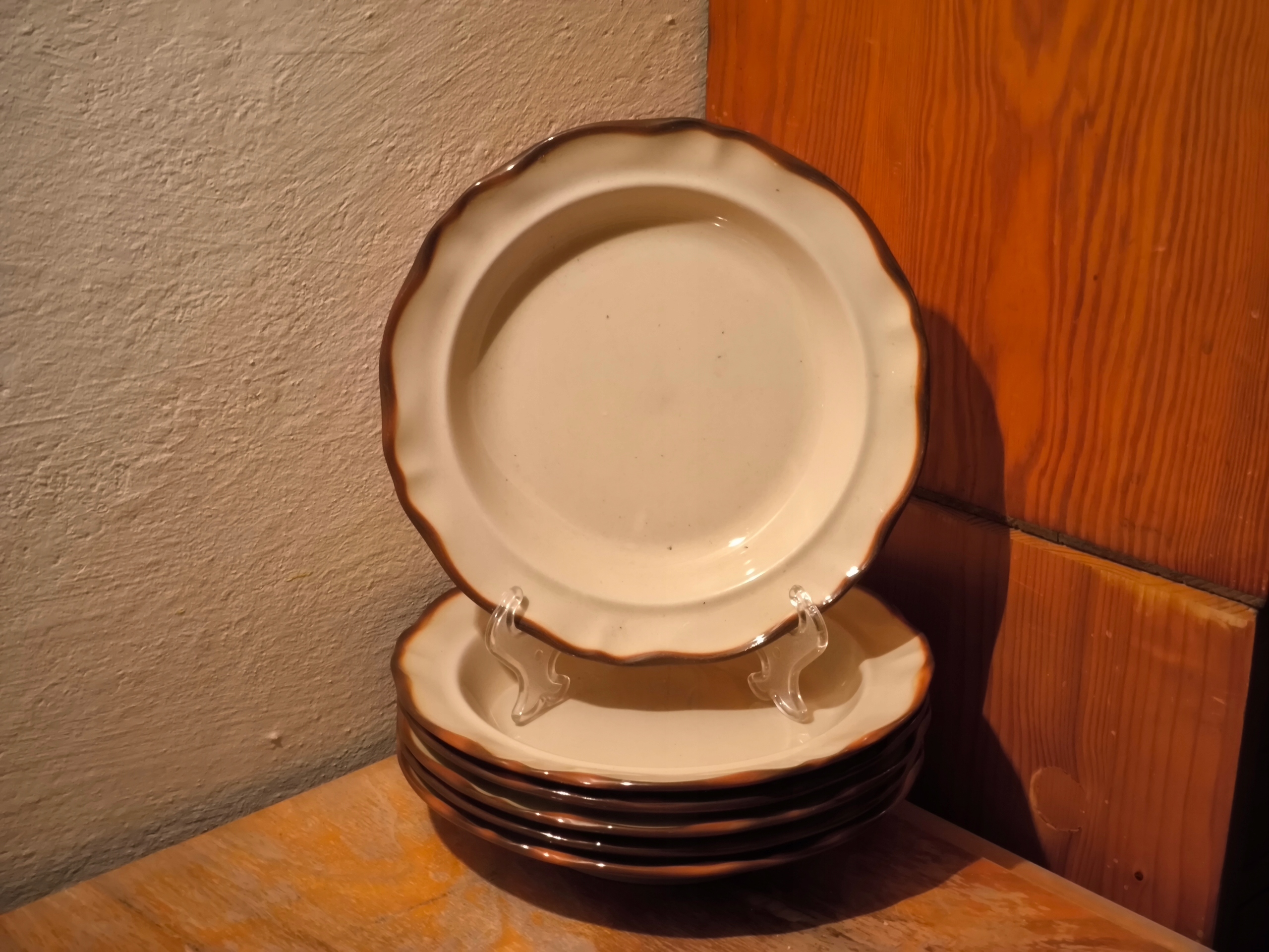 Установите 6x Beige Deep Plate Ностальгия 20,8 см. Парцецина Pruszków Prl