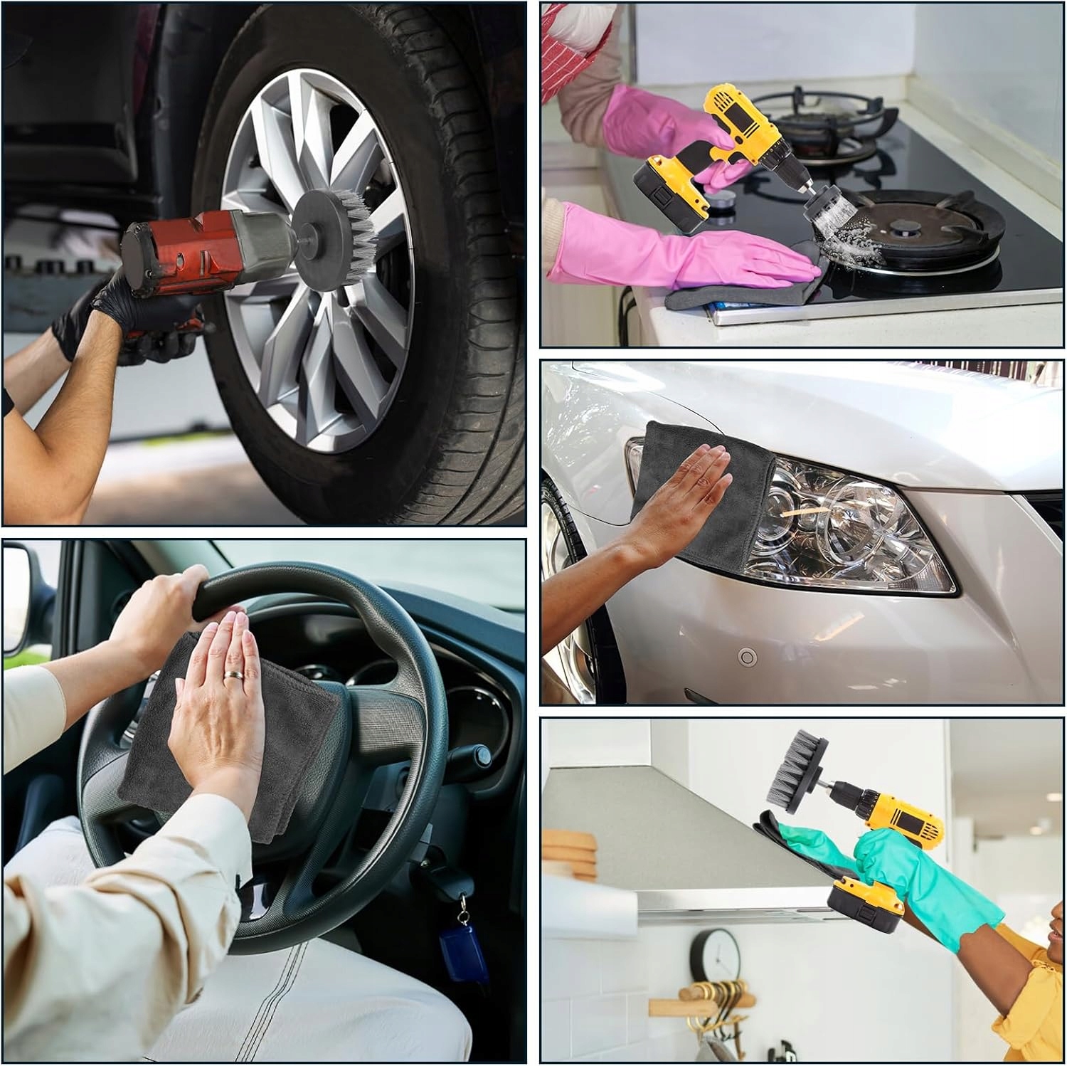 👍 【【 360 ° буровых кистей. Сэкономьте время】 совместимы с почти беспроводными сверлами или отвертками хода с шестигранными гнездами 1/4. Постоянная чистка работает быстрее и более точной очистки. Долгосрочная эффективность очистки.