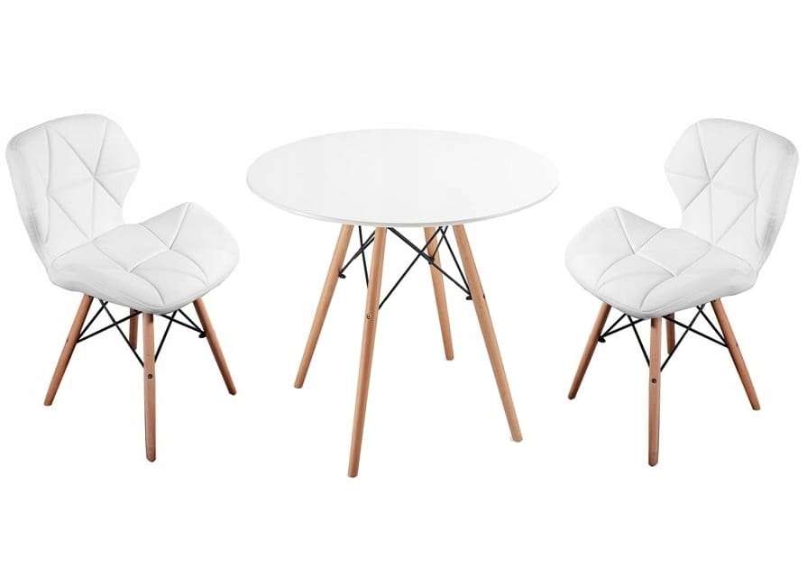 Установите белый стол + 2 обившихся стульев белый эко -липа