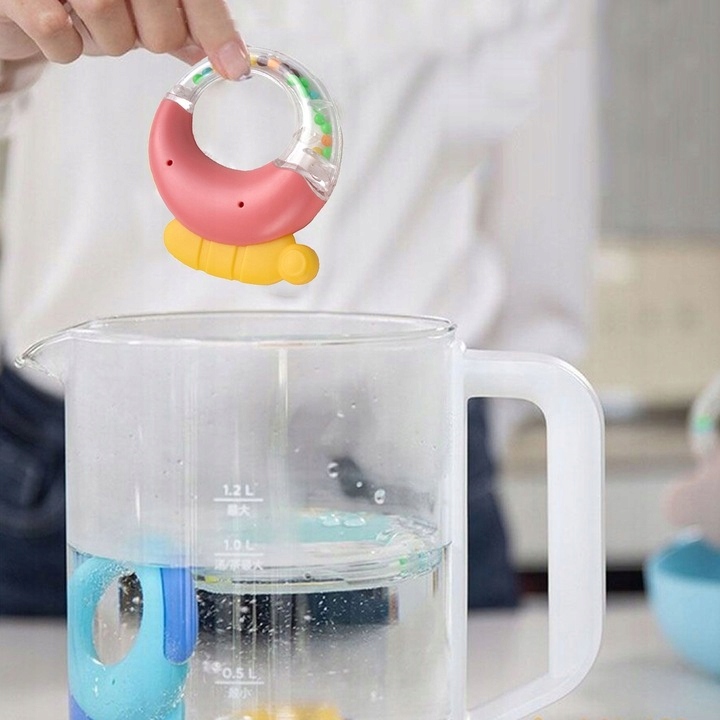 Рукояль имеет резиновые элементы, идеально подходящие для укуса , они великолепны во время прорезывания зубов