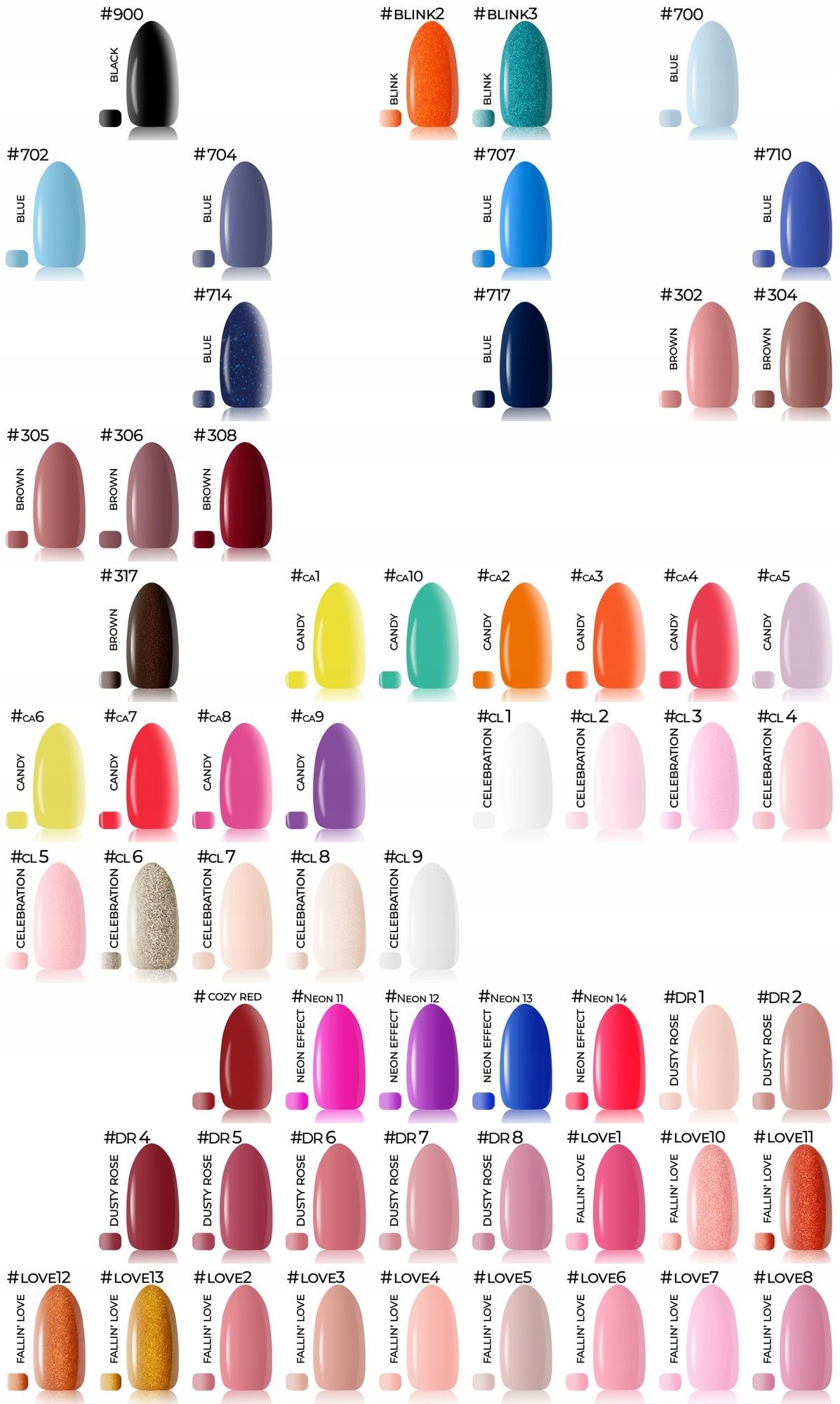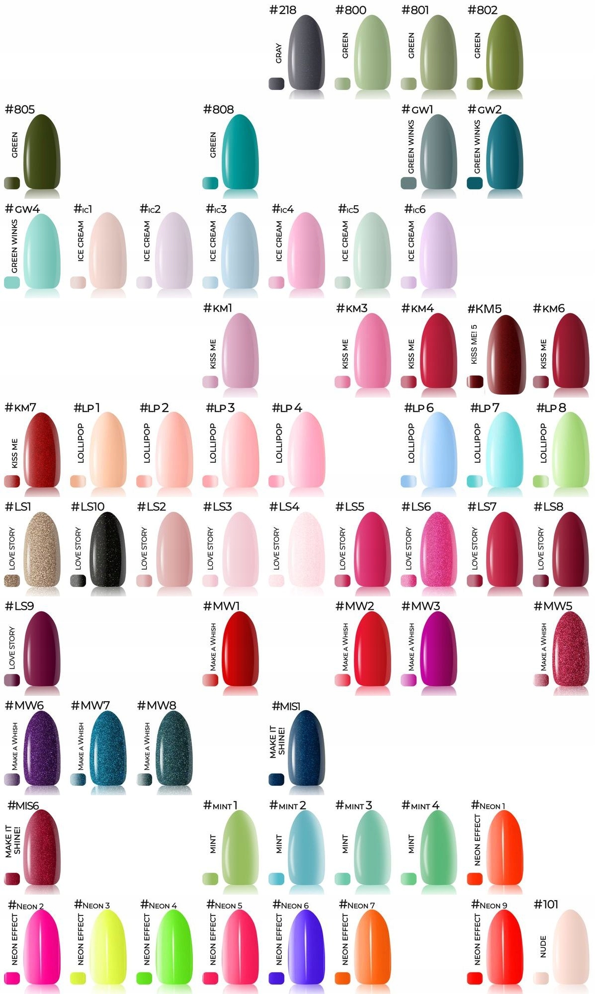При выборе цвета в сообщении продавцу, пожалуйста, предоставьте цветовые цифры (без имен коллекций), которые находятся в верхнем левом углу каждого цвета лака. Это значительно ускорит процесс упорядочения