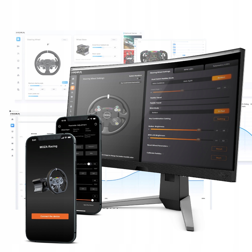 Весь набор дополняется приложением Pit House Mosa , которое позволяет вам управлять всеми установленными компонентами. Благодаря интуитивному интерфейсу пользователь может легко настроить настройки FFB, назначать функции на кнопки рулевого управления или обновить прошивку компании.