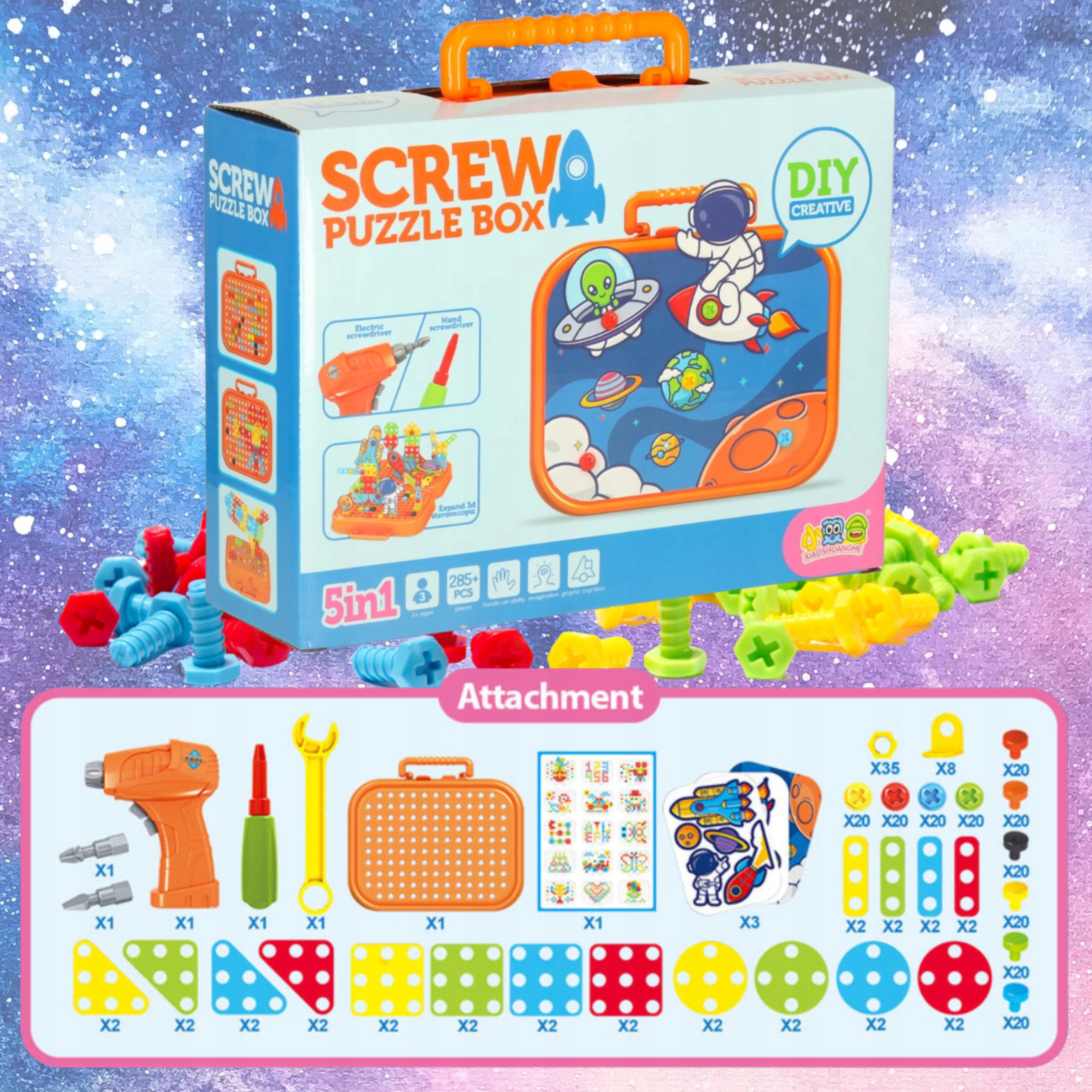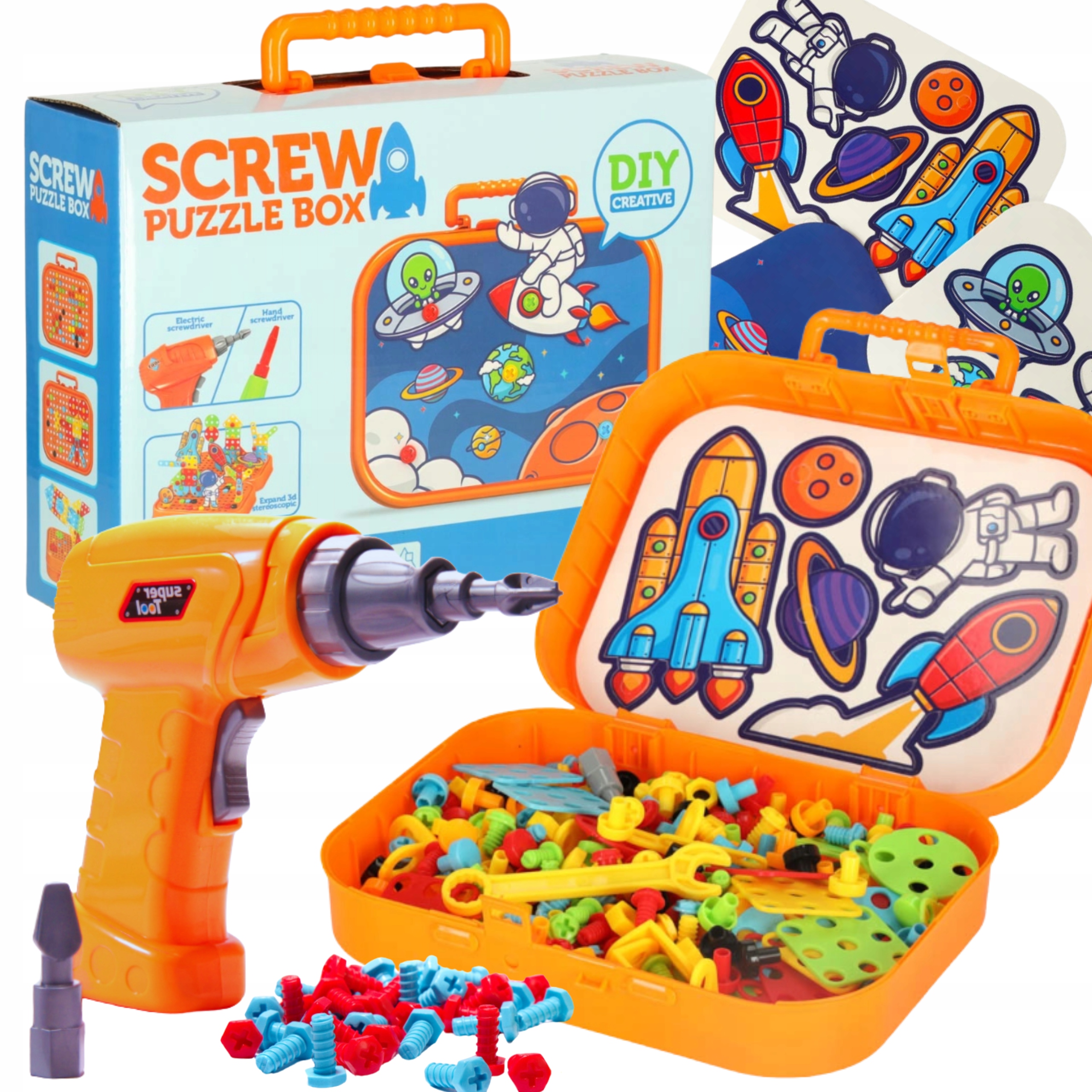 Откройте дверь для бесконечного воображения с уникальным строительным набором "Винтовой головоломкой" ! Этот творческий набор пространства позволяет детям создавать фантастические модели ракеты, астронавтов, планет и элодов, используя красочные винты и электрическая отвертка - точно так же, как реальные инженеры -космические инженеры! 🚀👨🚀🛸